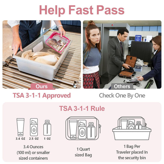 TSA Approved Toiletry Bag - Peach Red Clear Makeup Bag with Supporting Frame, Clear Toiletry Bag for Travel, Thick No Smell
