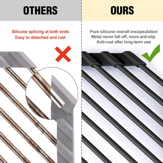 Small Triangle Roll-Up Dish Drying Rack with Silicone Coating Stainless Steel Frame for Sink Corners, Multipurpose Over-The-Sink Kitchen Drainer & Organizer for Space-Saving Storage (Black)