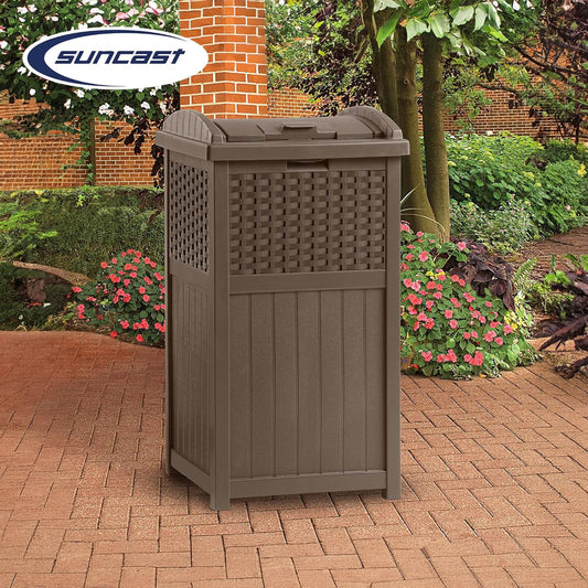 33 Gallon Commercial Outdoor Trashcan Hideaway with Lid for 30 to 33 Gallon Trash Bags for Garage, Backyard, or Garden, Brown