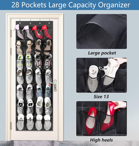 28 Large Pockets Hanging Shoe Organizer over the Door Shoe Rack for Closet Door Storage Mesh Shoe Holder Hanger for Men, Black