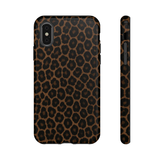 Brown Leopard Print Tough Phone Case, Classic Animal Print Protective Case, iPhone & Samsung Cover