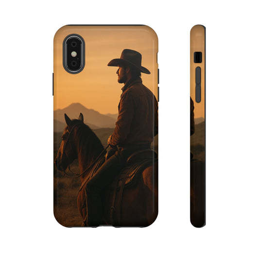 Western Cowboy Sunset Phone Case – Horse Rider Silhouette Tough Case