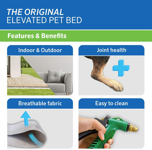 Original Elevated Dog Bed - Breathable Off-The-Ground Pet Bed with Cooling Fabric, Joint Relief & Moisture-Resistant Fabric, 100% Recyclable, Easy Clean, Gunmetal, Medium