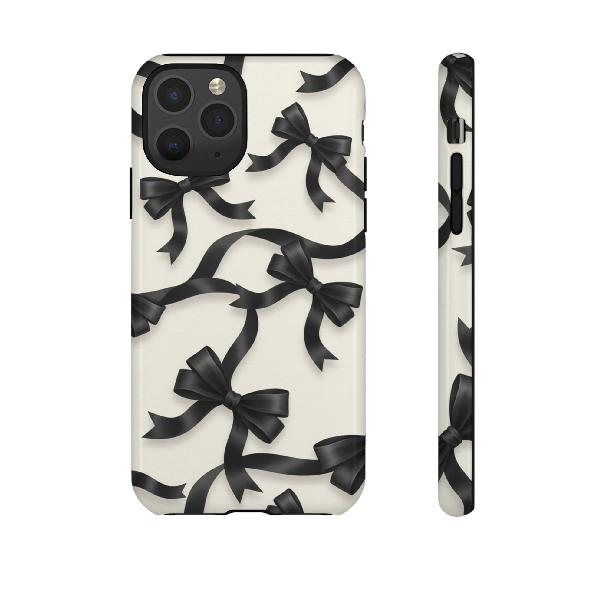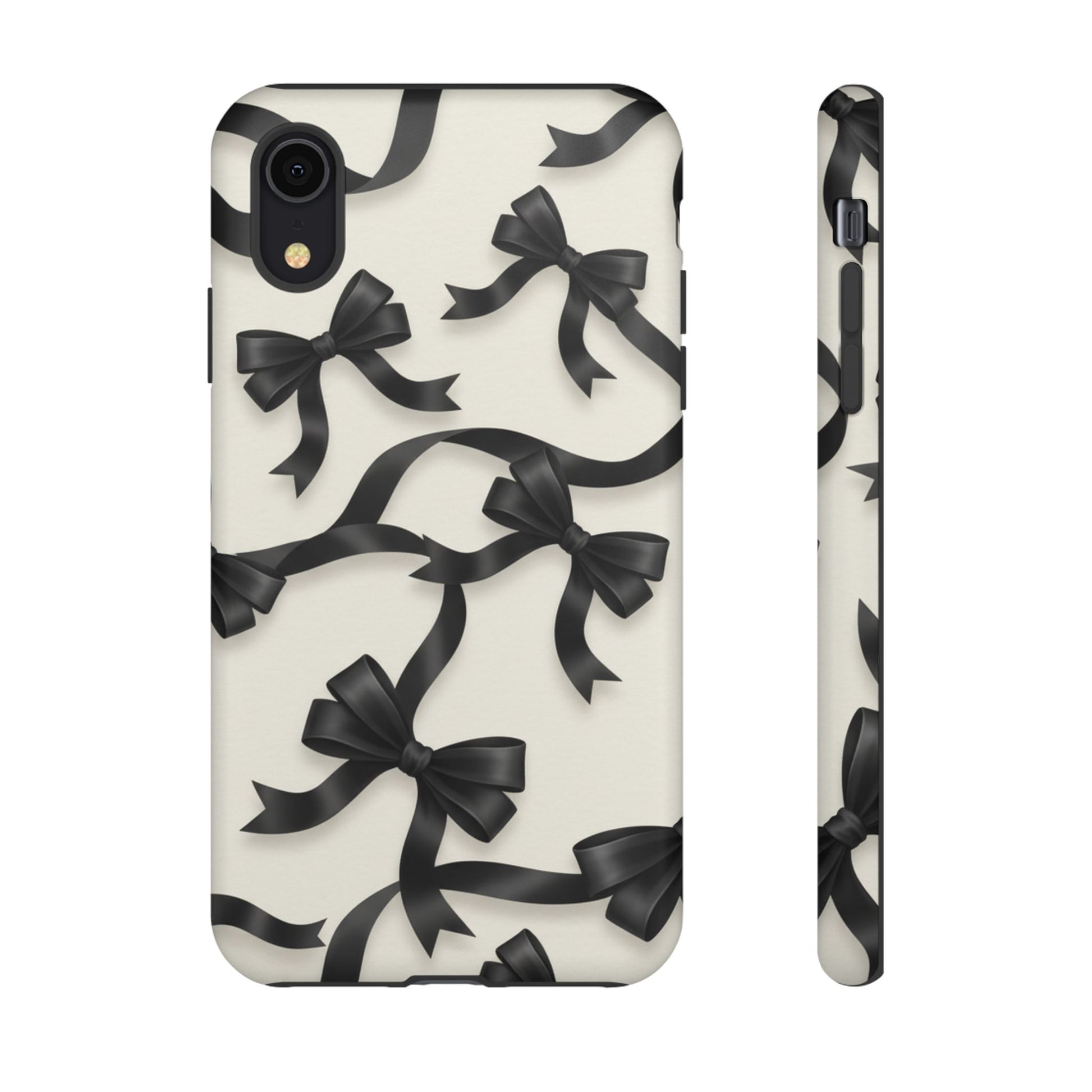 Black Ribbon Bow Phone Case, Minimal Bow Pattern Tough Protective Case