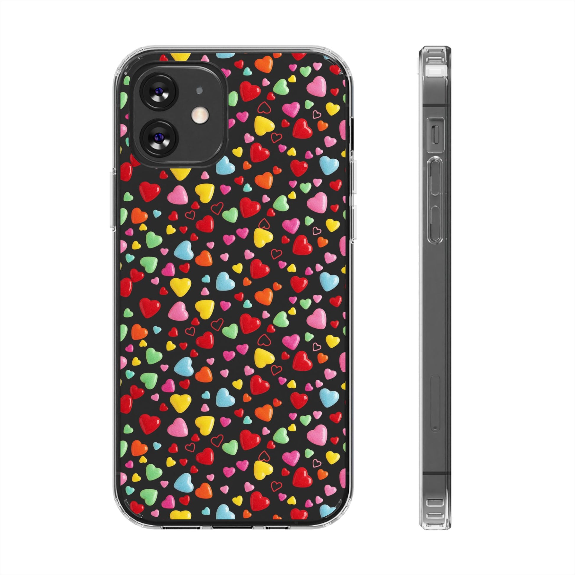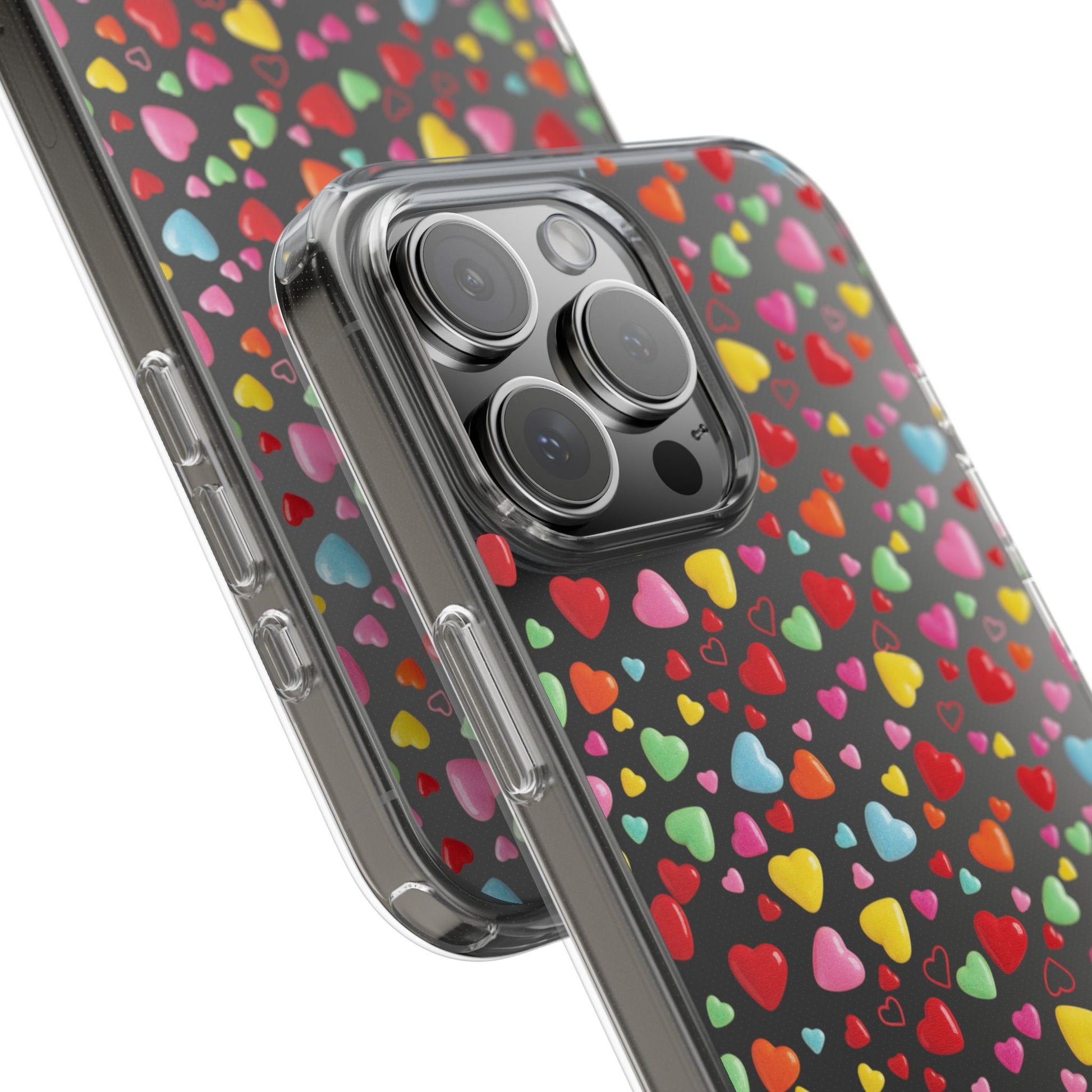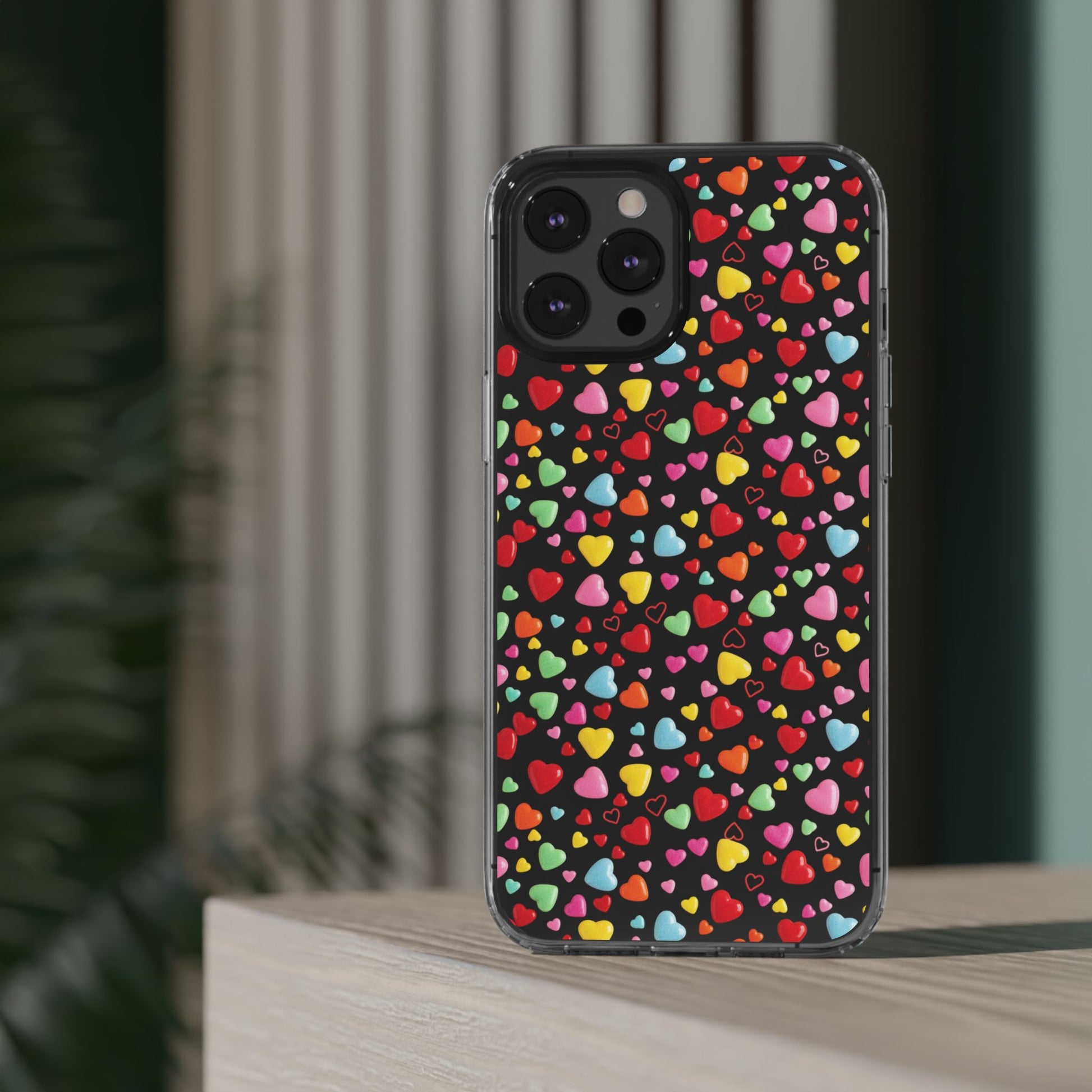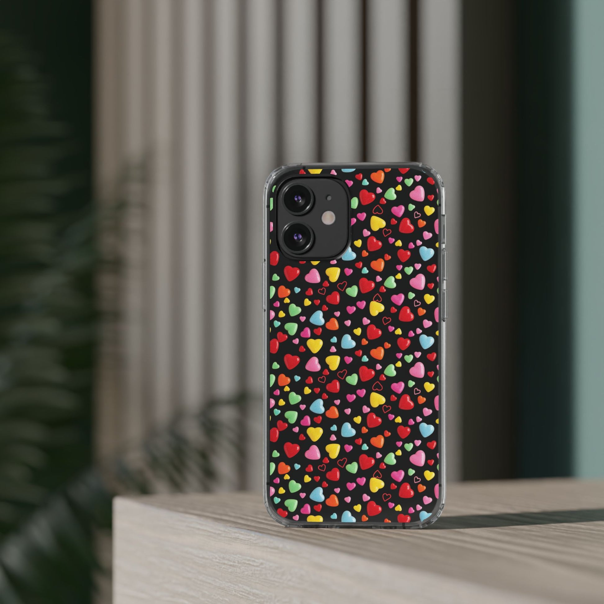 Colorful Heart Clear Phone Case | Impact-Resistant Valentine Aesthetic Case