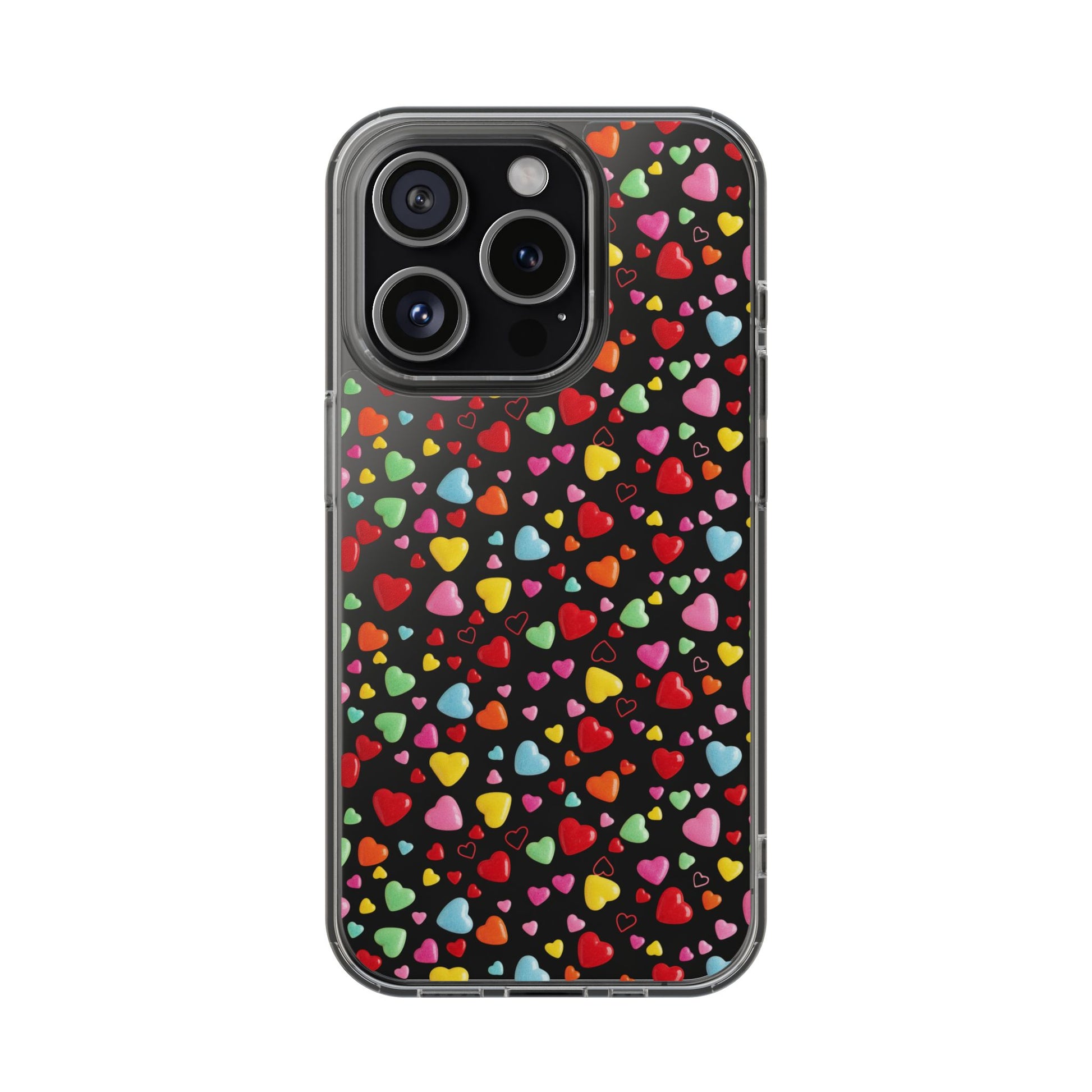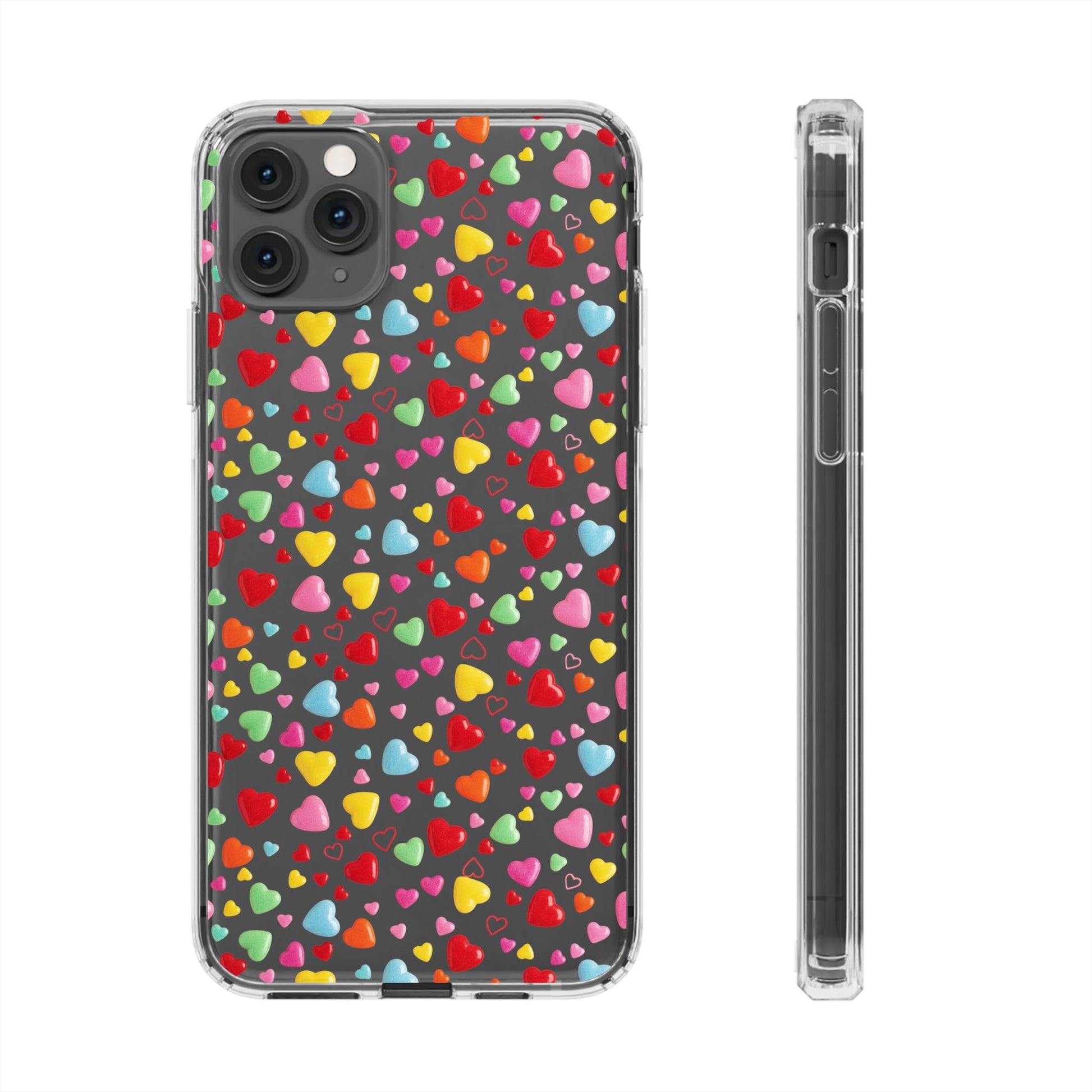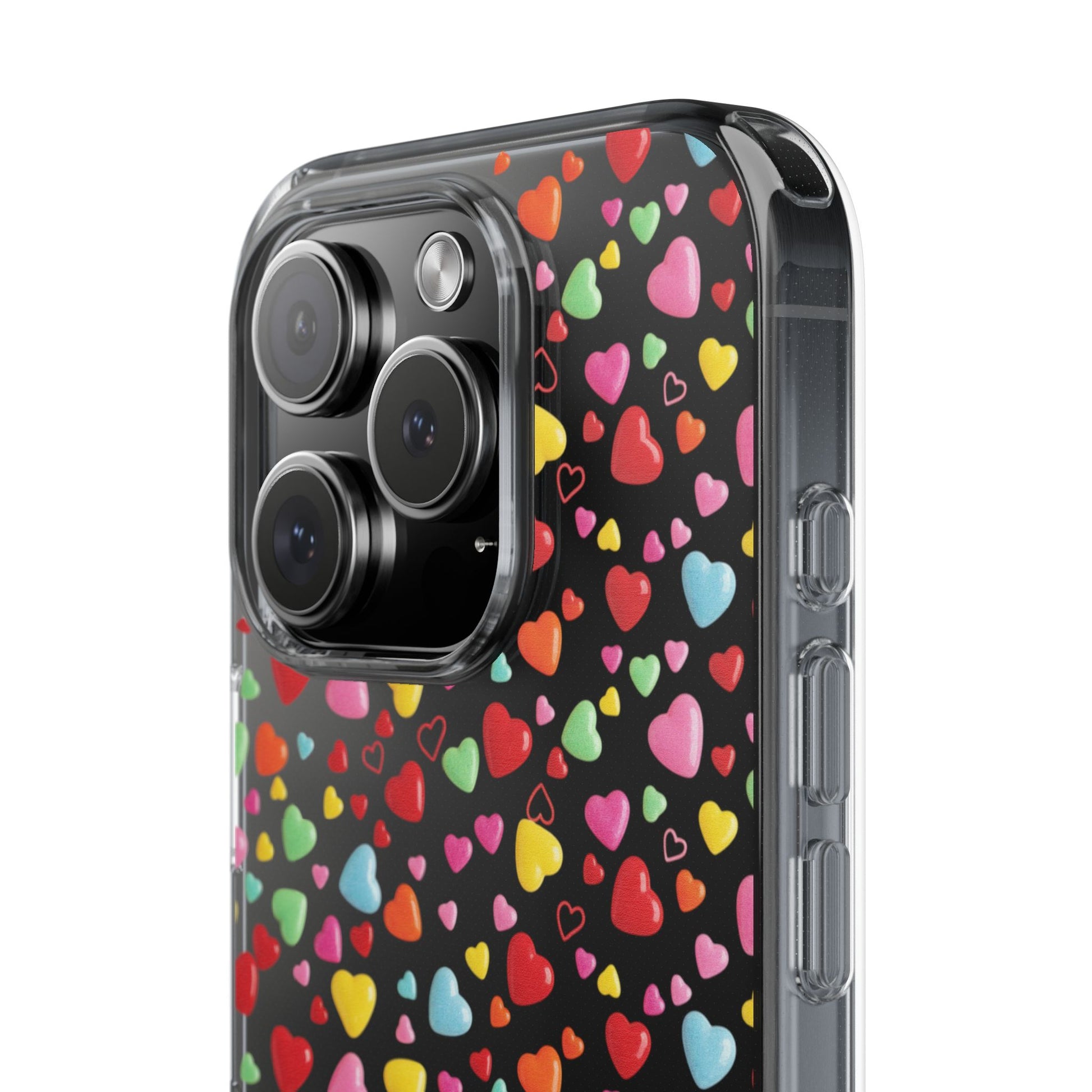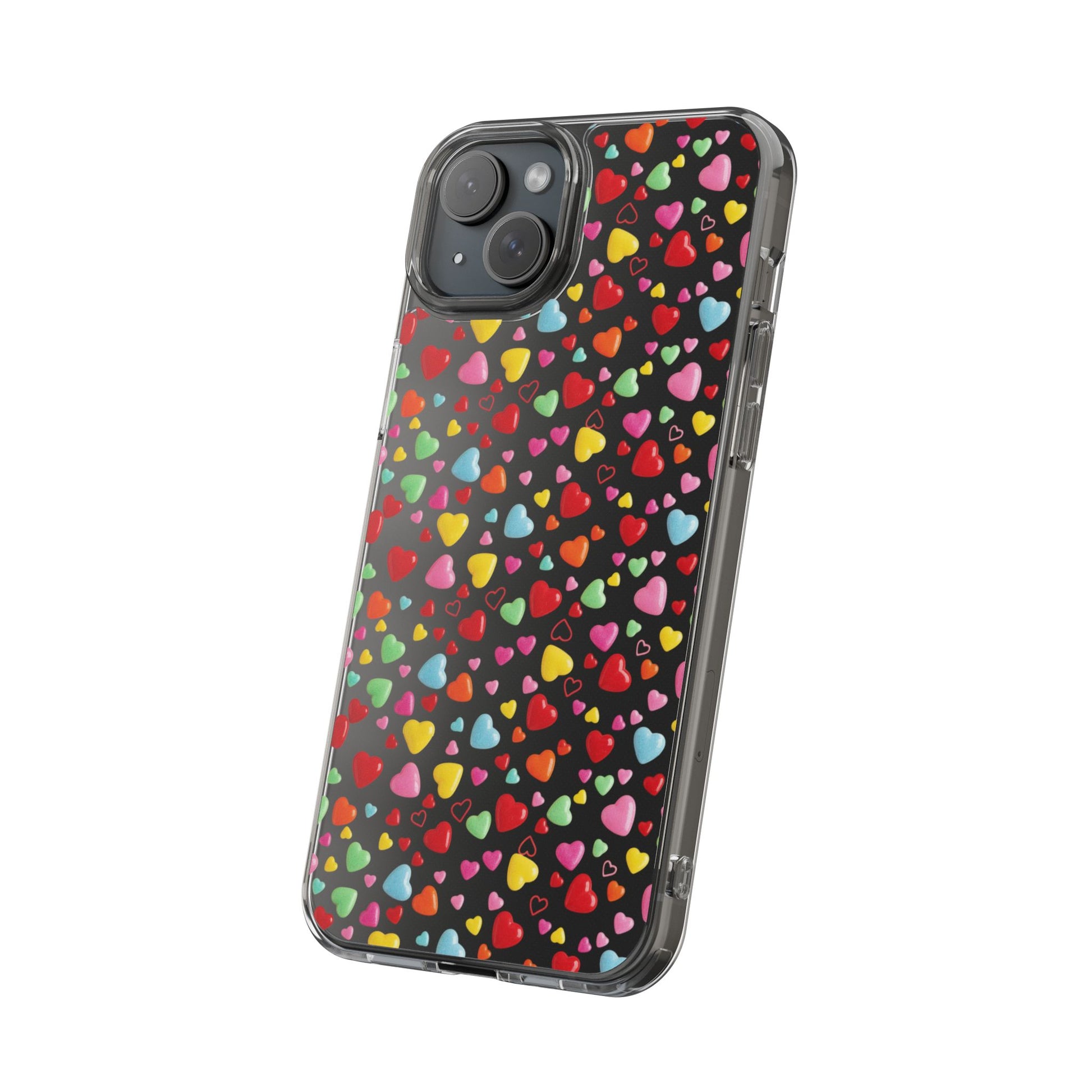 Colorful Heart Clear Phone Case | Impact-Resistant Valentine Aesthetic Case