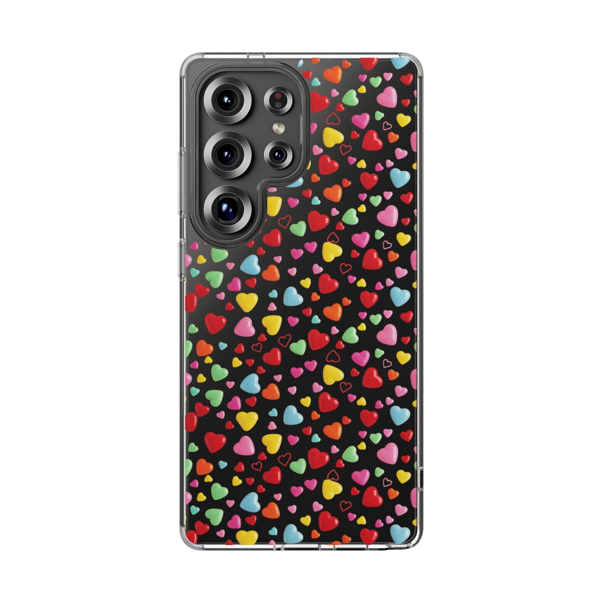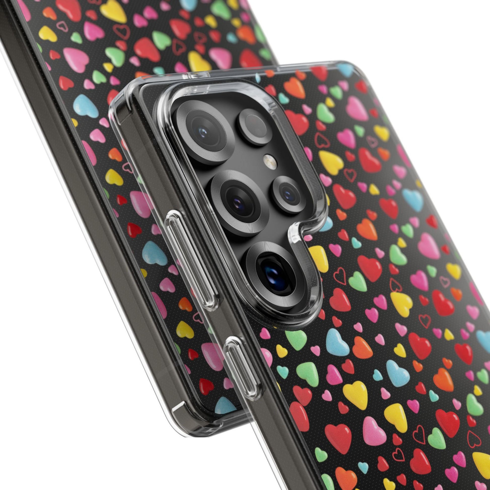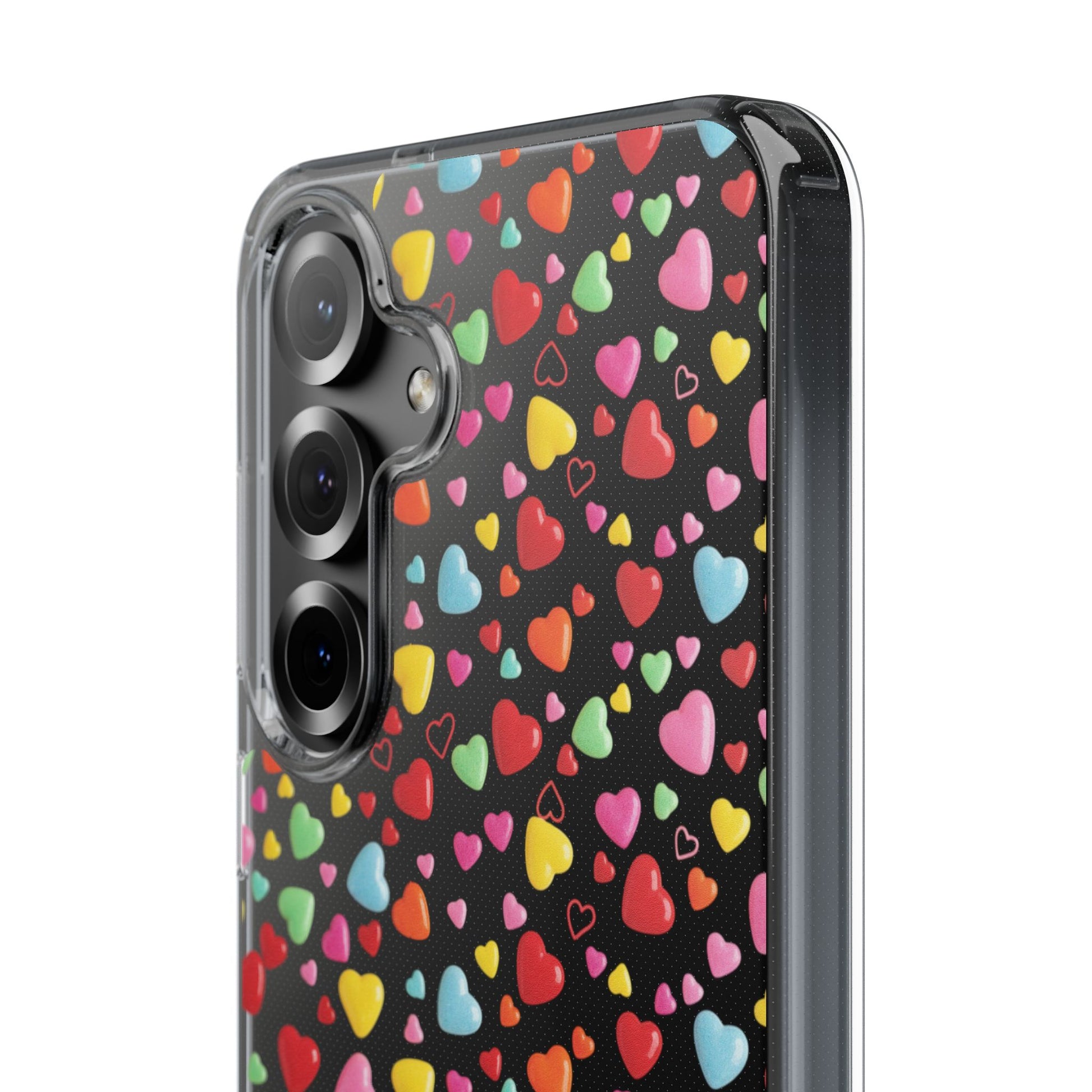 The transparent shell keeps the look fresh and modern, while high-quality edge-to-edge printing locks the vibrant hearts beneath a smooth, glossy finish so colors stay bold over time. Slim enough for pockets, strong enough for real life — this case is made to brighten your day without sacrificing protection.