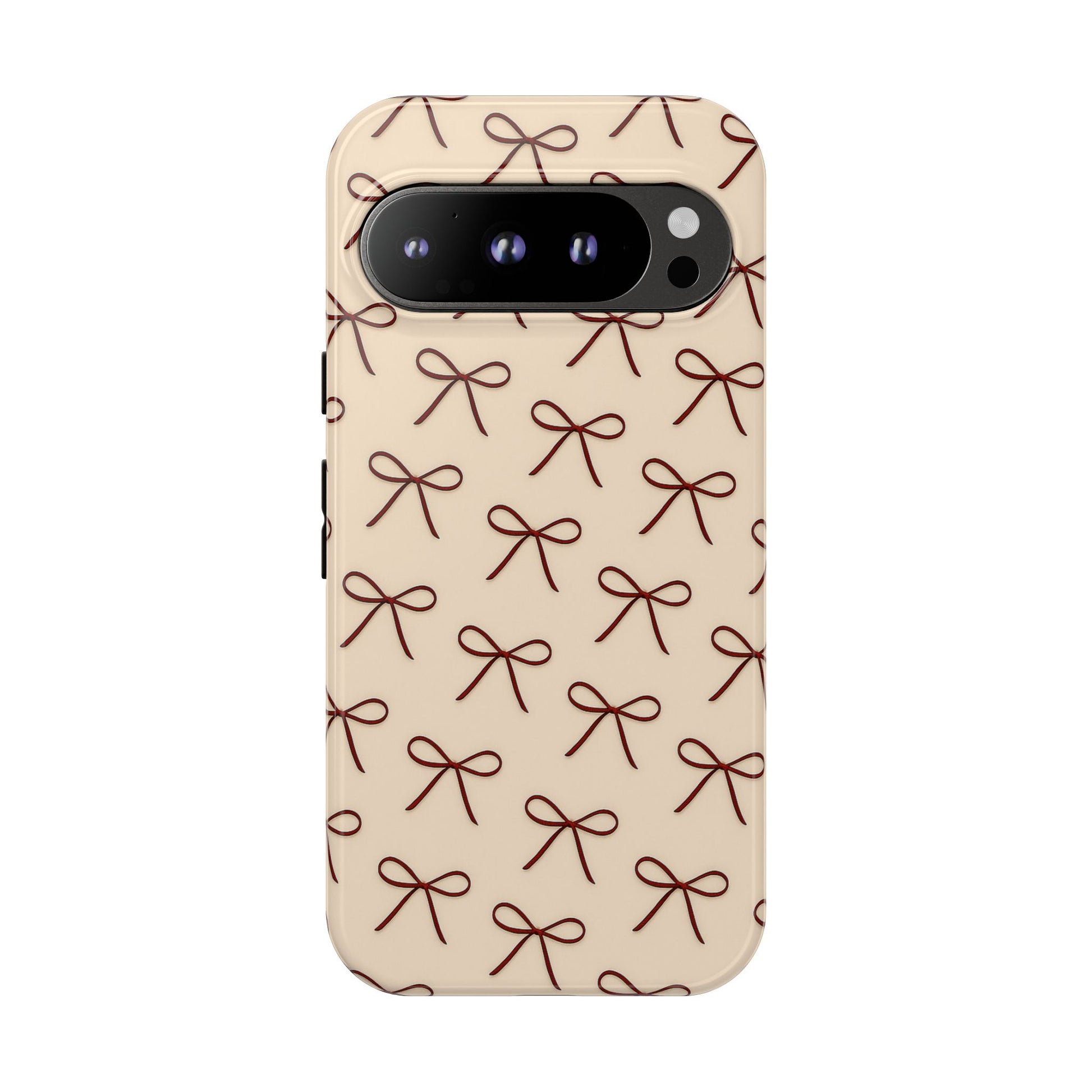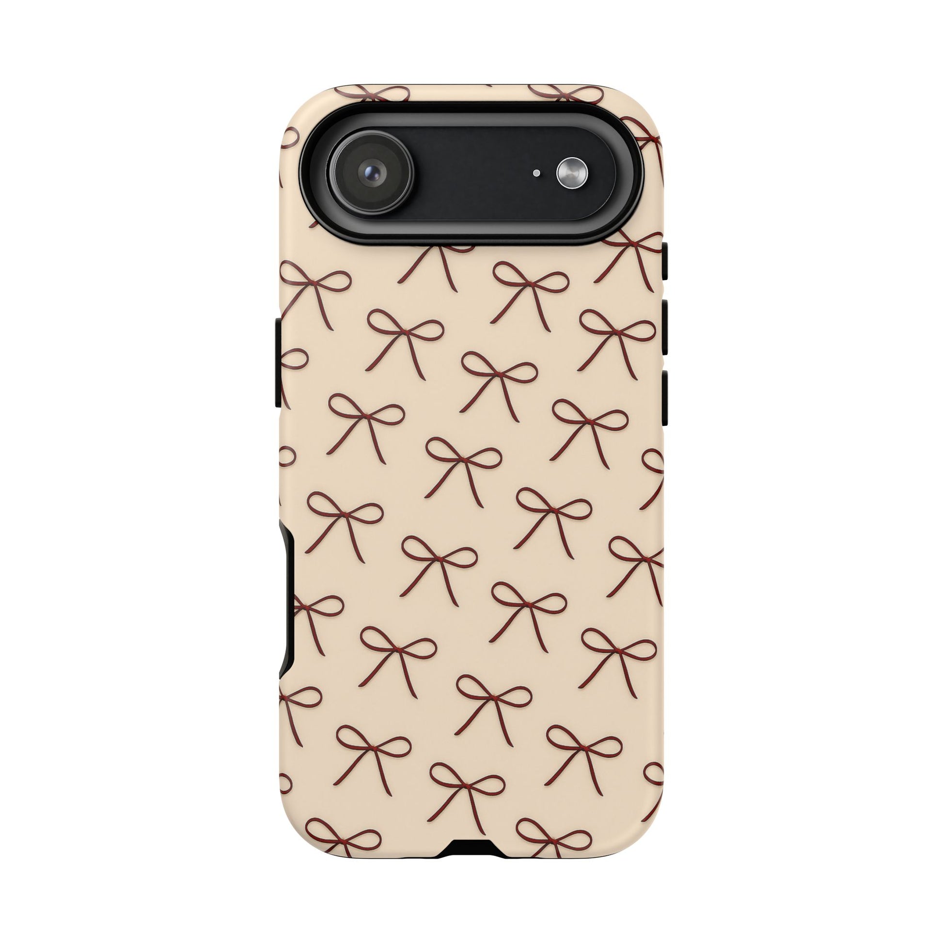 A soft, feminine phone case designed for everyday elegance. This coquette-inspired design features delicate brown bows on a warm neutral background, creating a timeless aesthetic that feels romantic, minimal, and effortlessly chic.