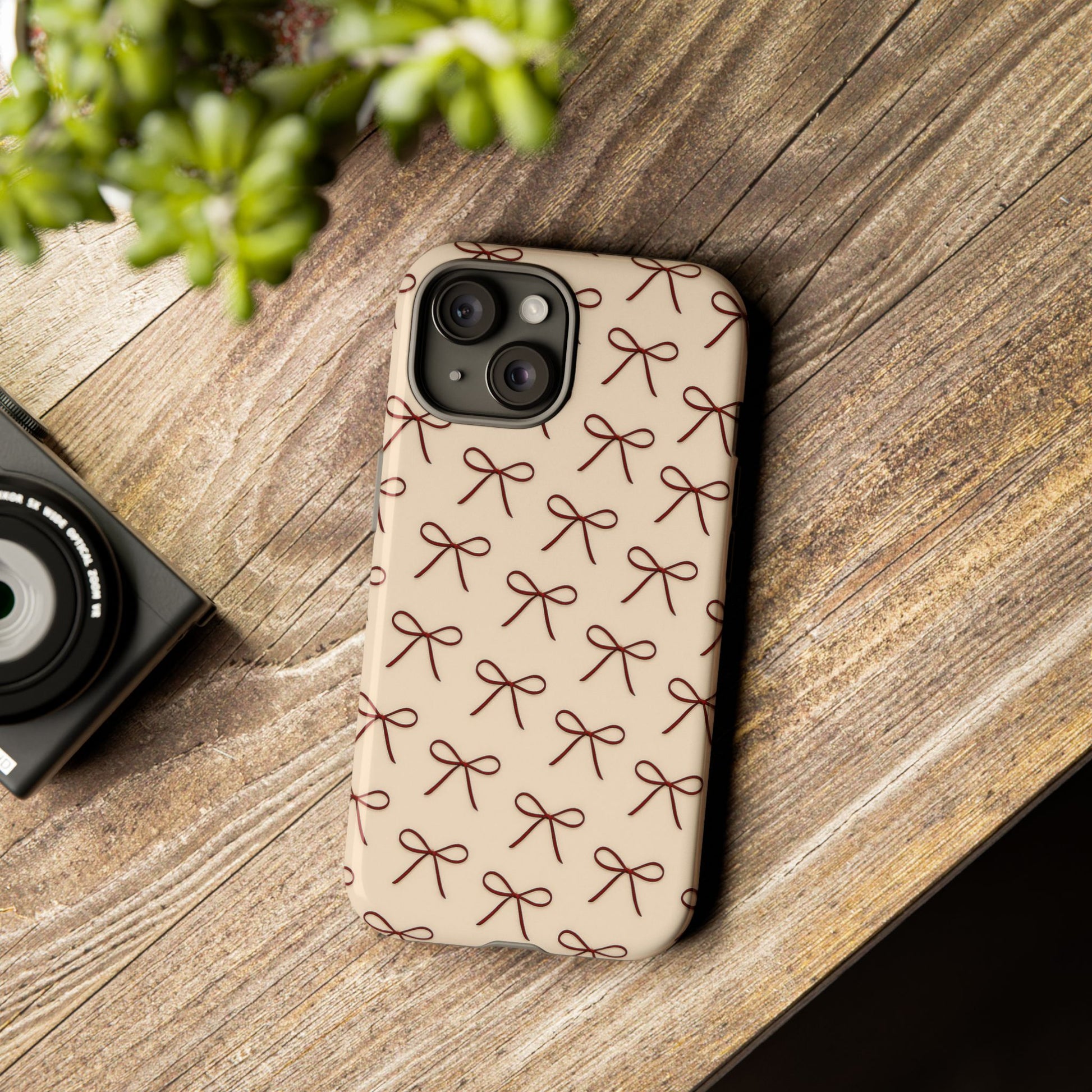 Coquette Bow Phone Case | Neutral Beige Aesthetic iPhone & Samsung Tough Case