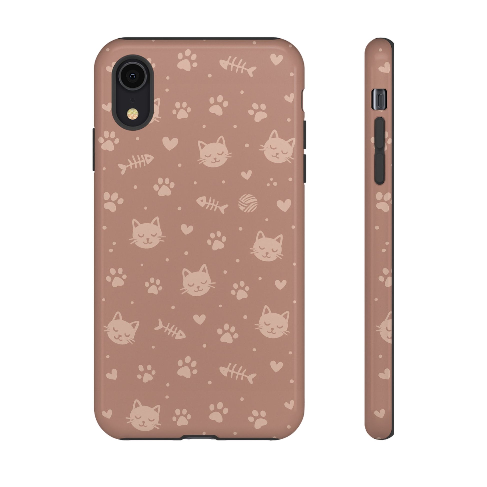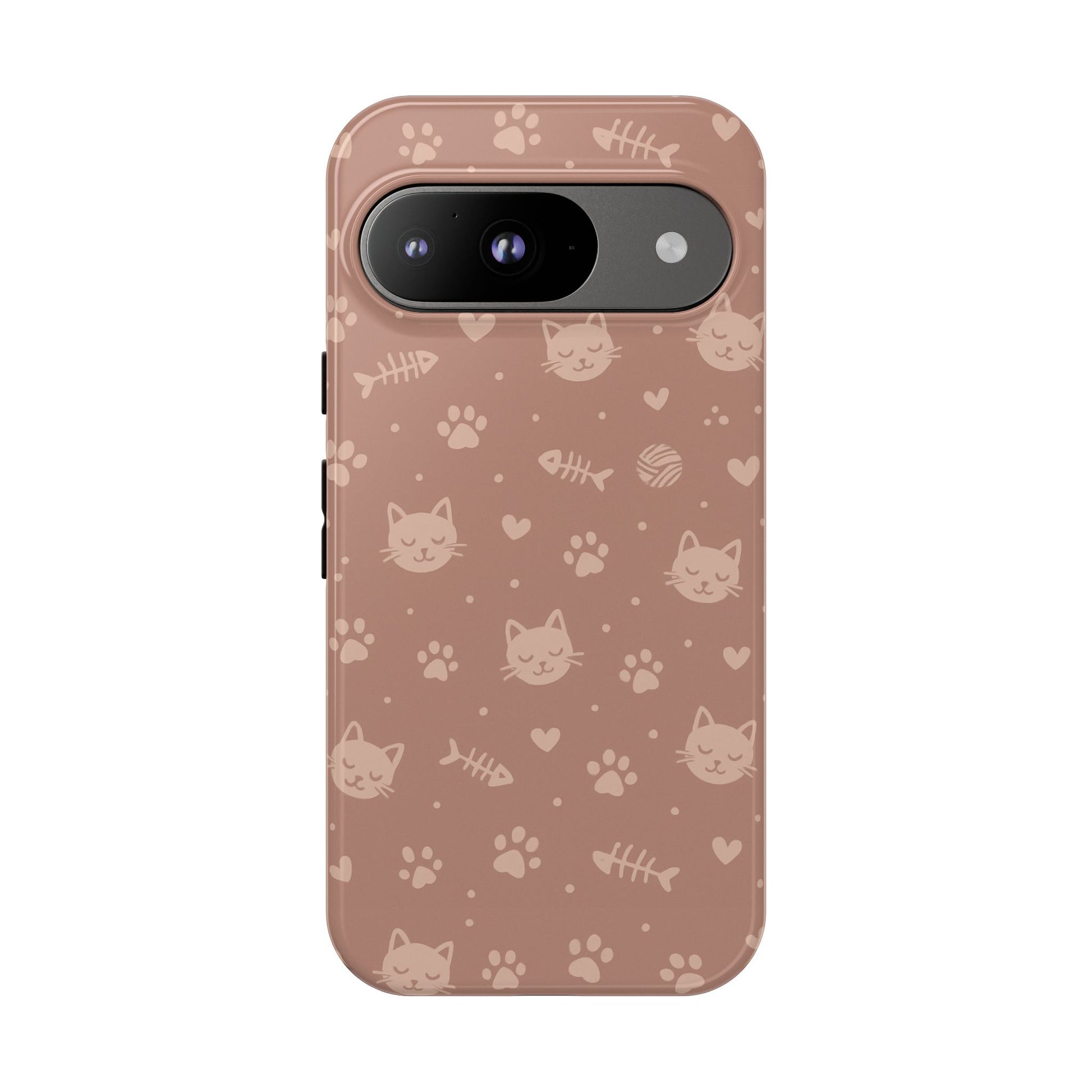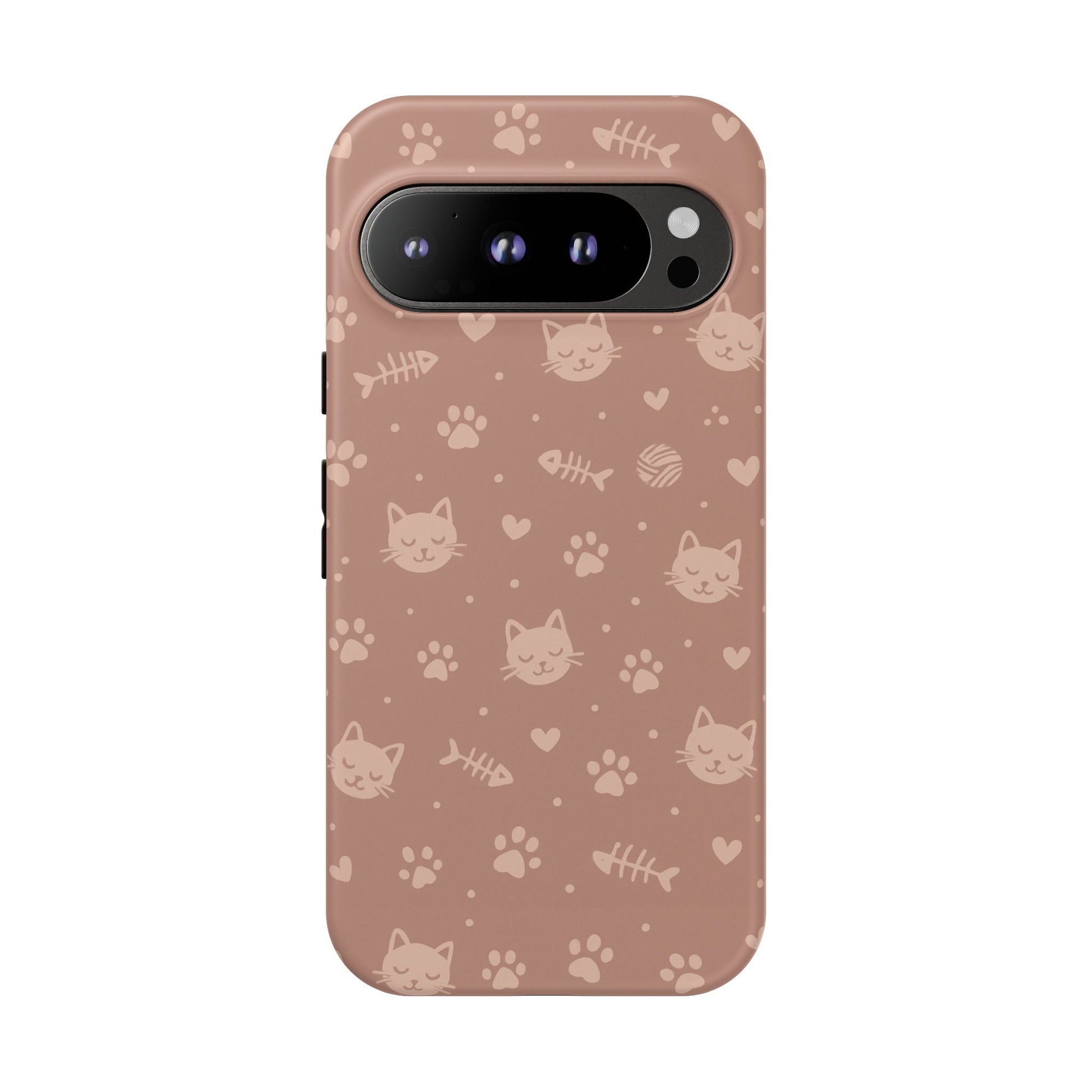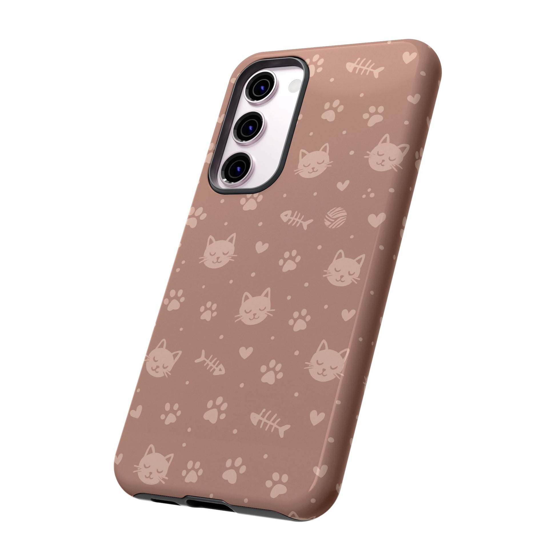 Add a cozy, playful touch to your everyday carry with this cute cat pattern phone case. Featuring an all-over design of smiling kittens, paw prints, yarn balls, and fishbones on a soft dusty-rose background, this case is perfect for cat lovers who want charm without sacrificing protection. The slim dual-layer construction combines a rigid polycarbonate shell with a shock-absorbing TPU liner to protect against drops, bumps, and scratches. Finished with a high-quality 3D wrap print and UV-resistant inks, the design stays vibrant while remaining lightweight and wireless-charging compatible. A sweet, stylish accessory made for daily use and endless compliments.