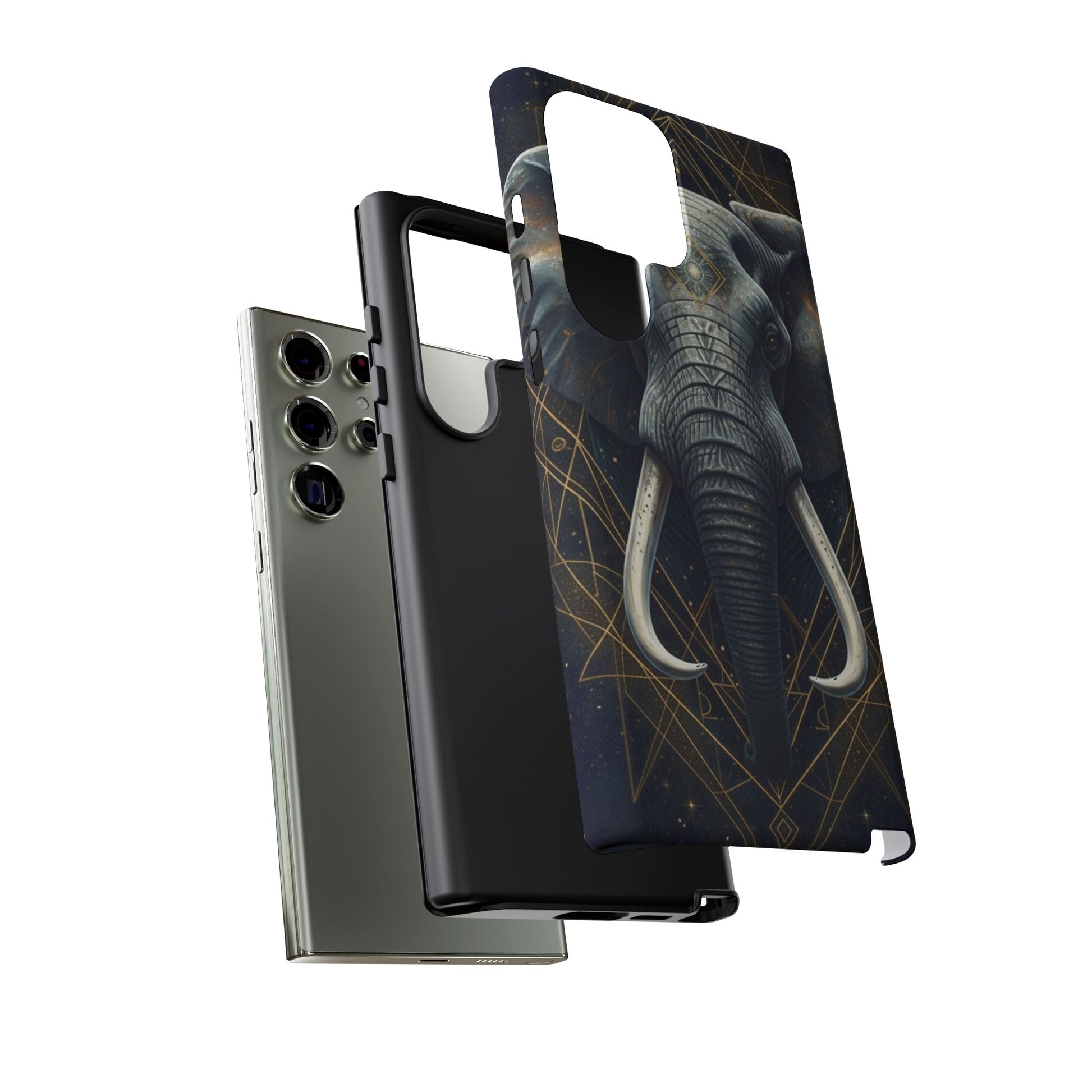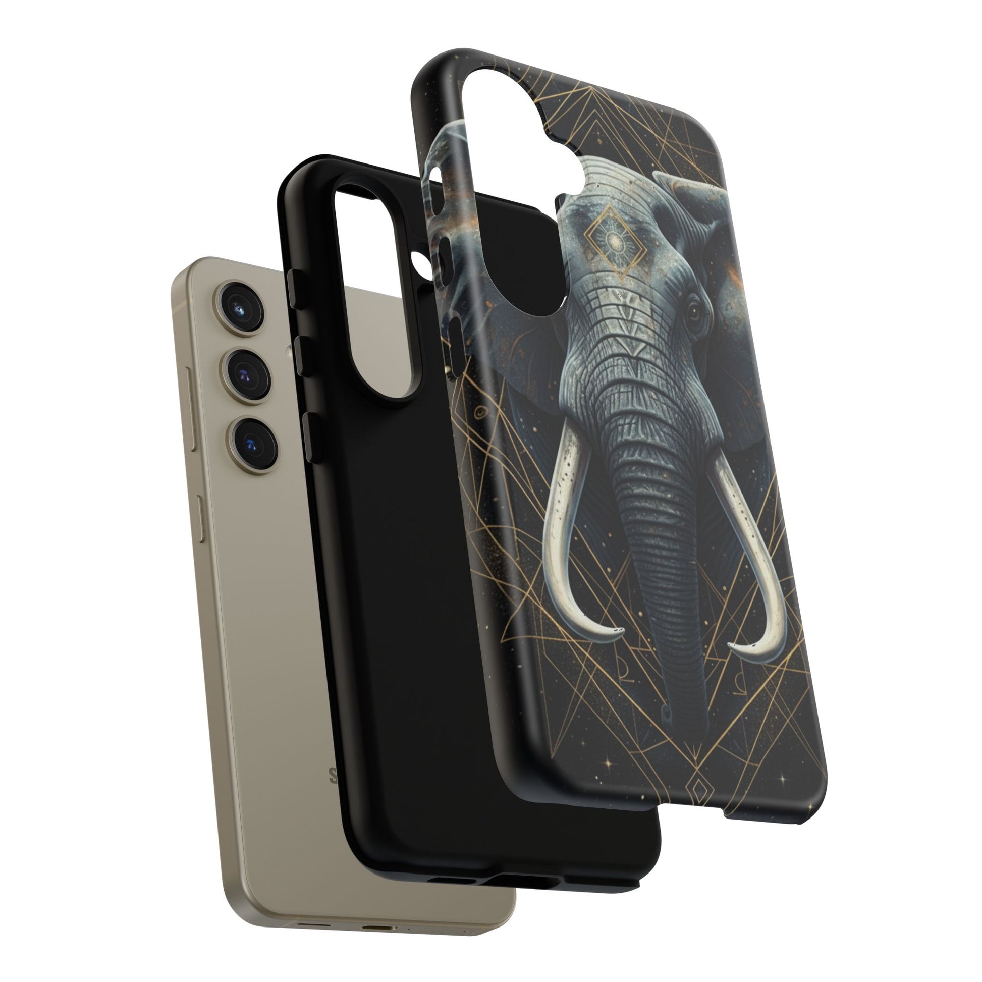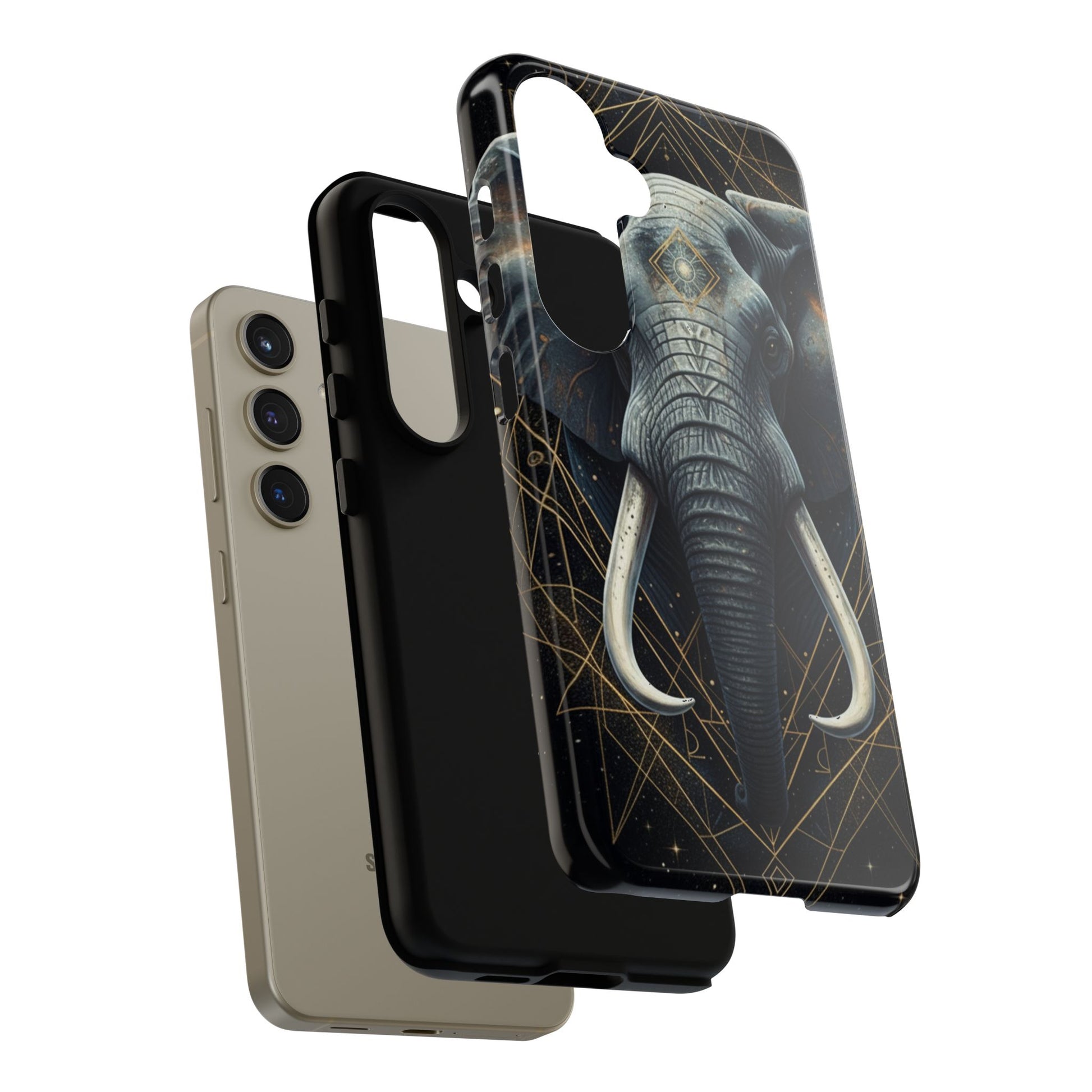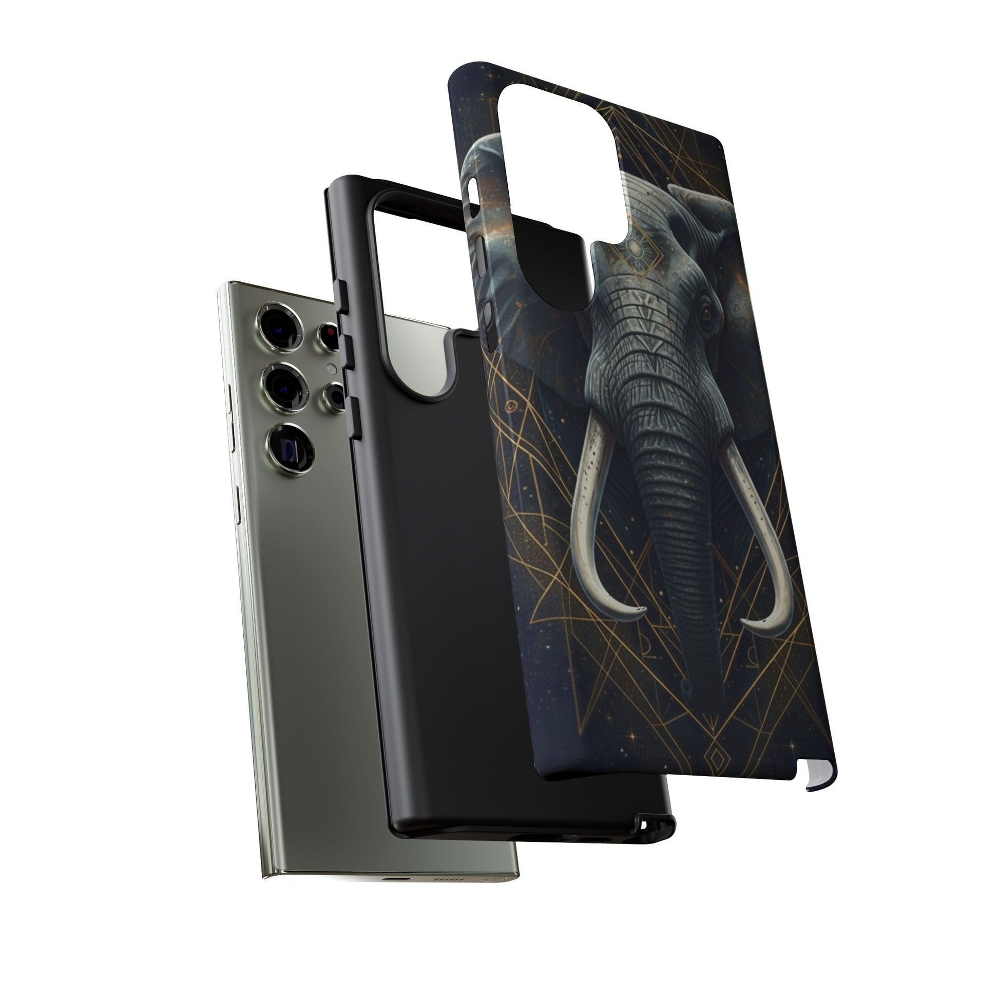 This elephant mandala phone case blends strength, symbolism, and refined design into a sleek everyday essential. Set against a deep, dark background, the regal elephant is framed with subtle gold-accented geometric lines, creating a calm yet powerful statement that feels modern and intentional.
