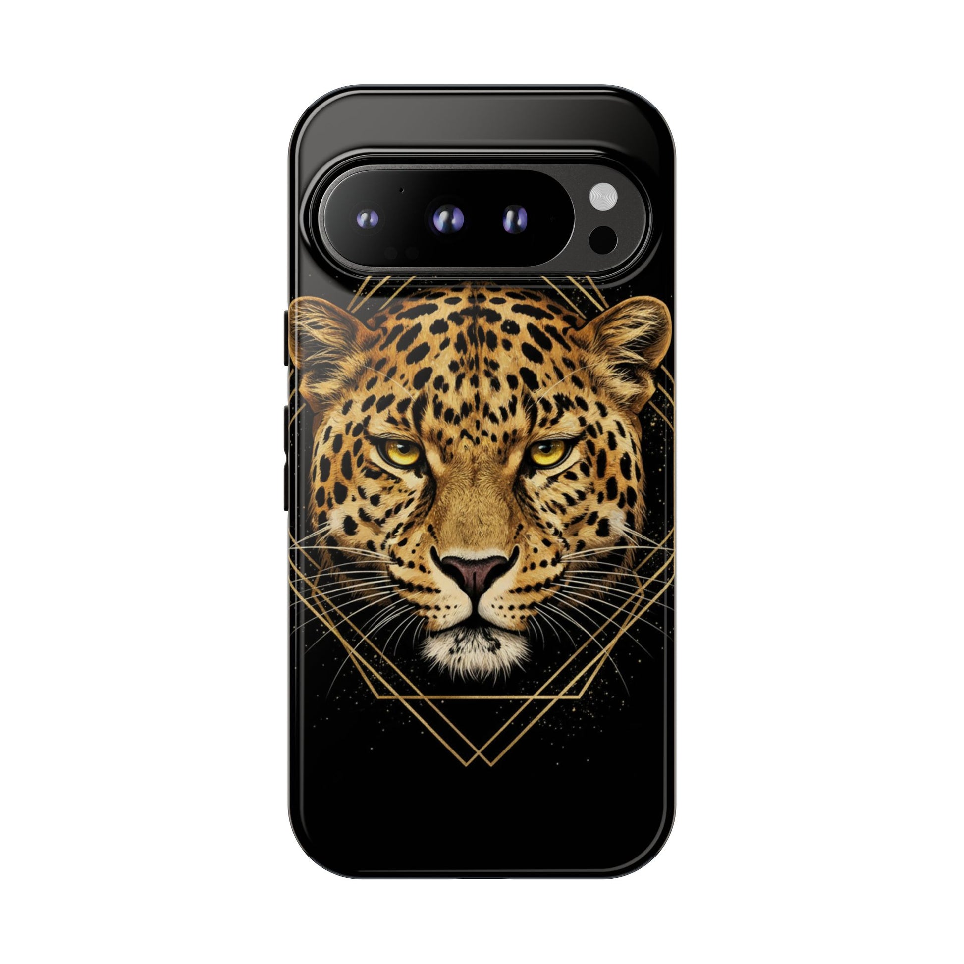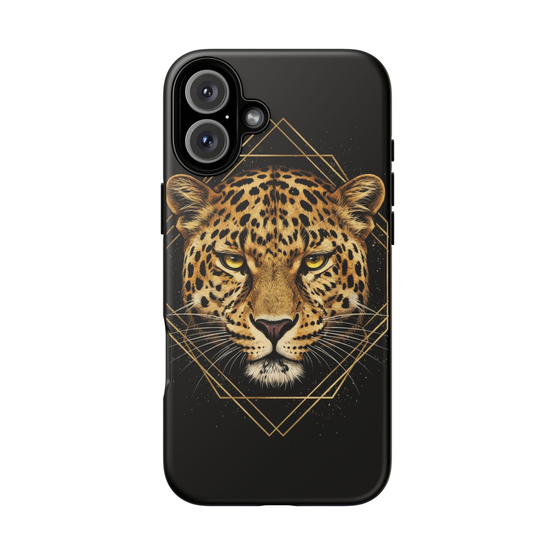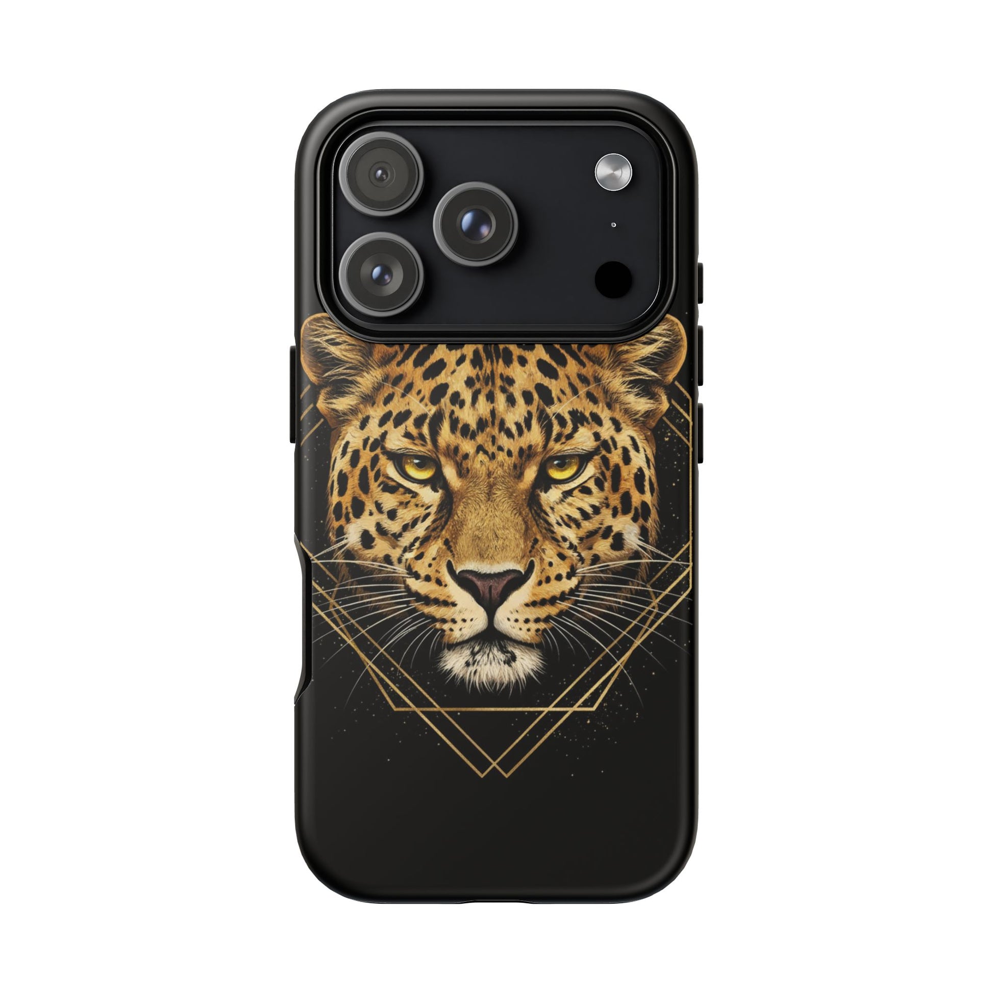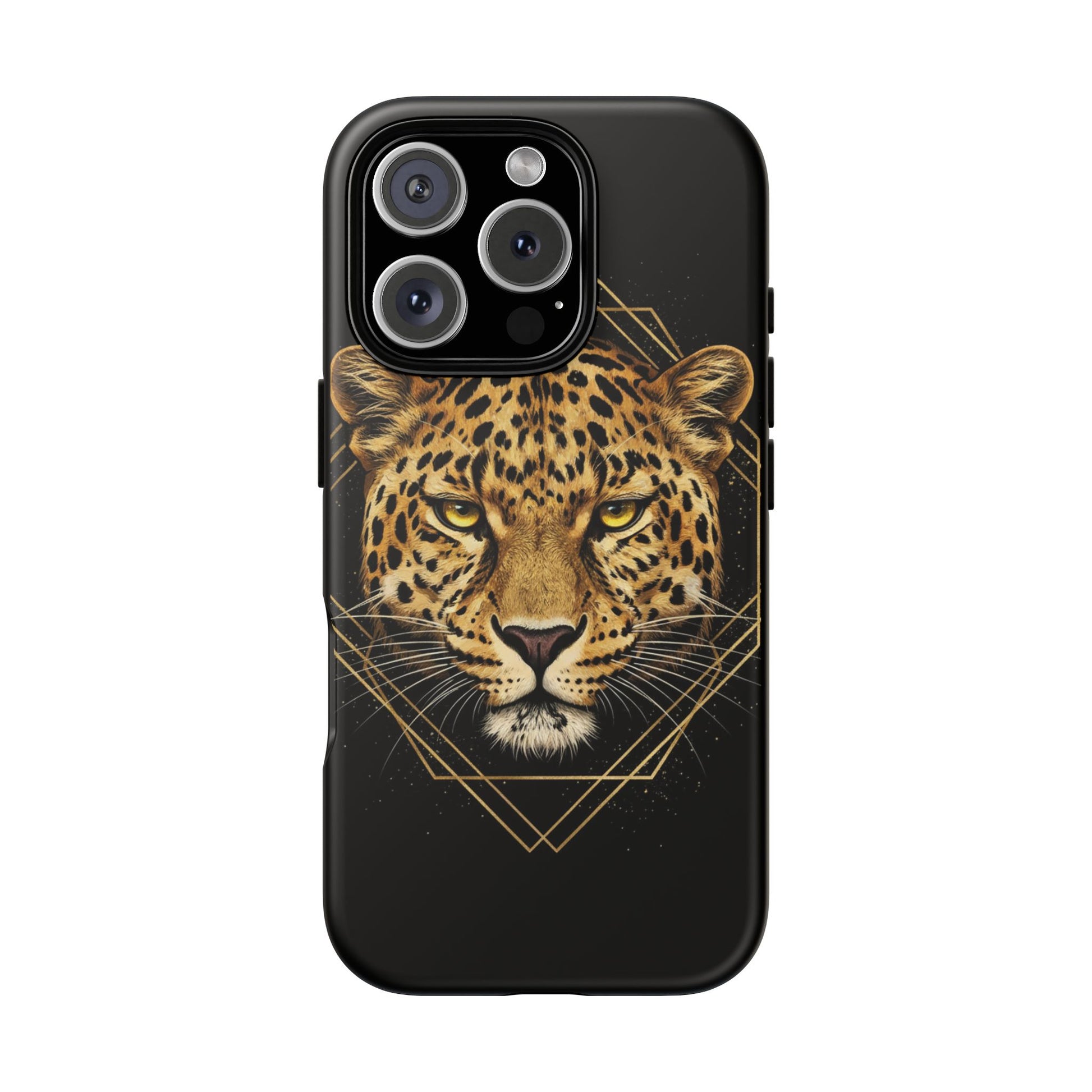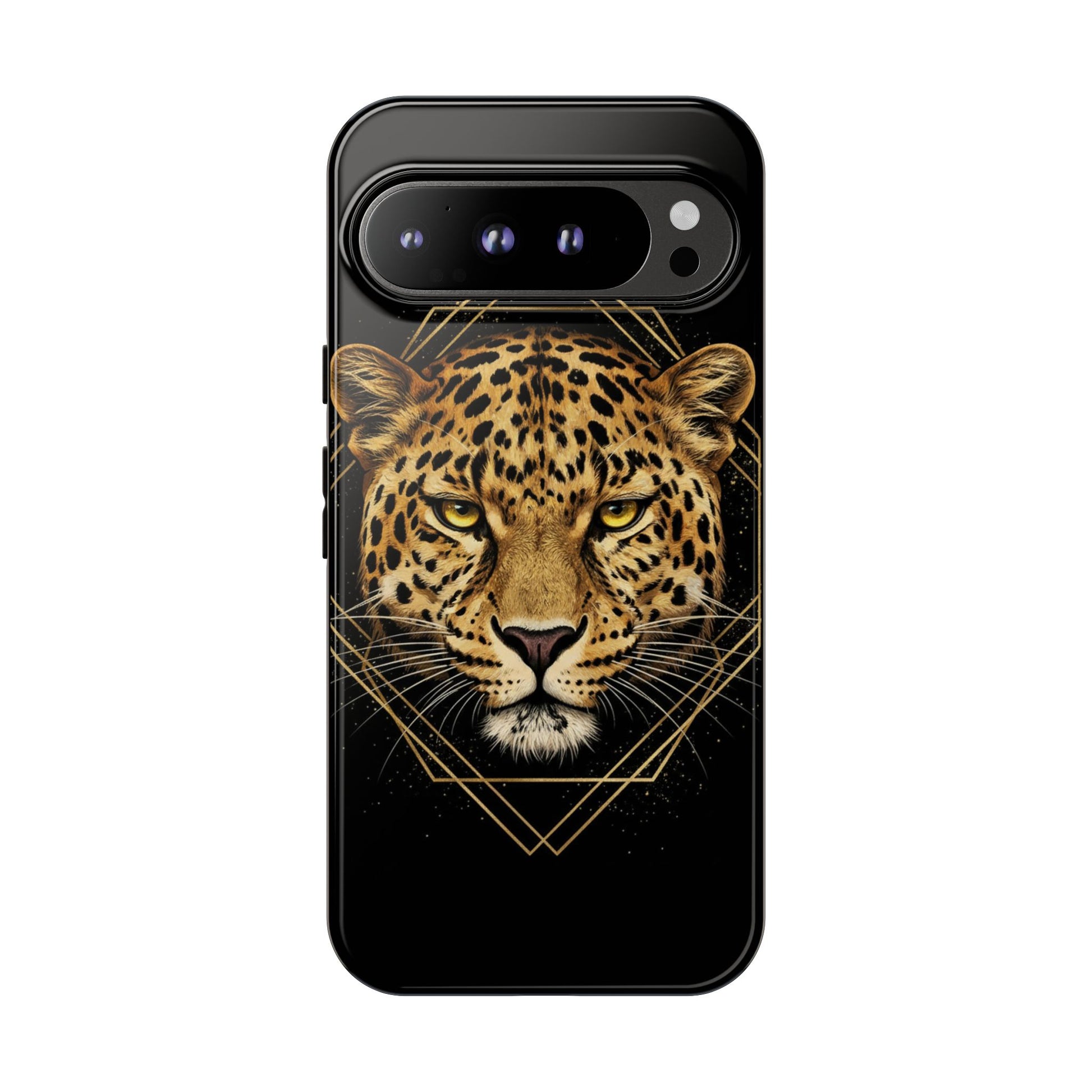 Leopard Head Geometric Phone Case – Black & Gold Luxe Tough Case