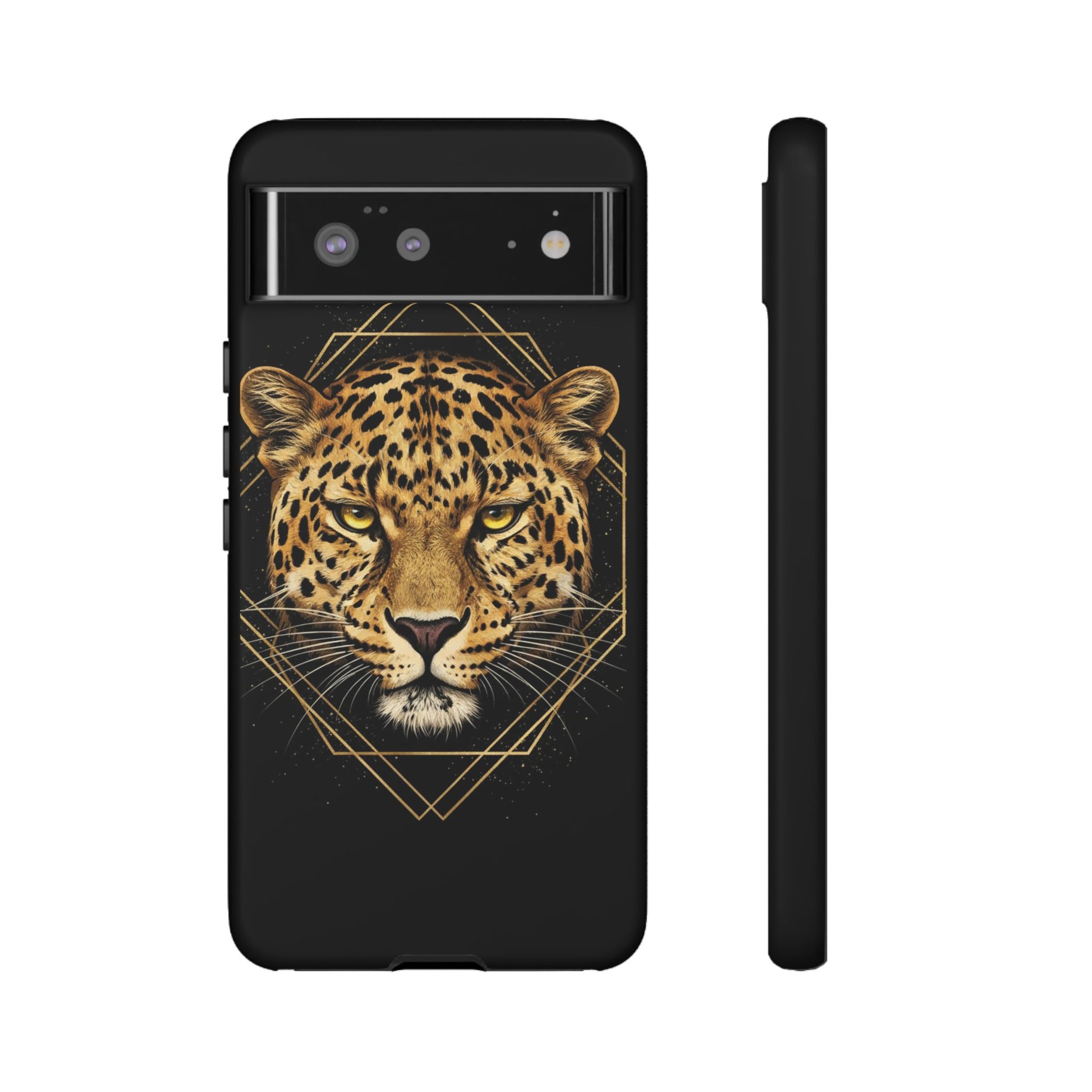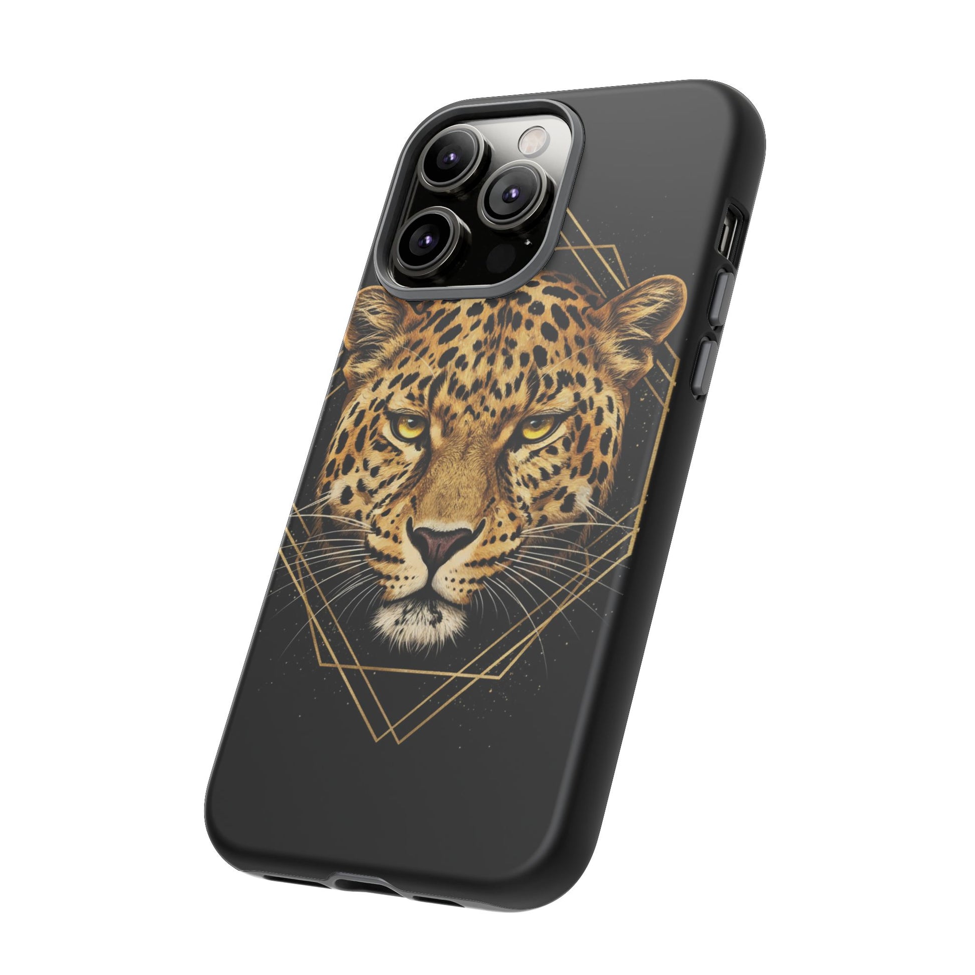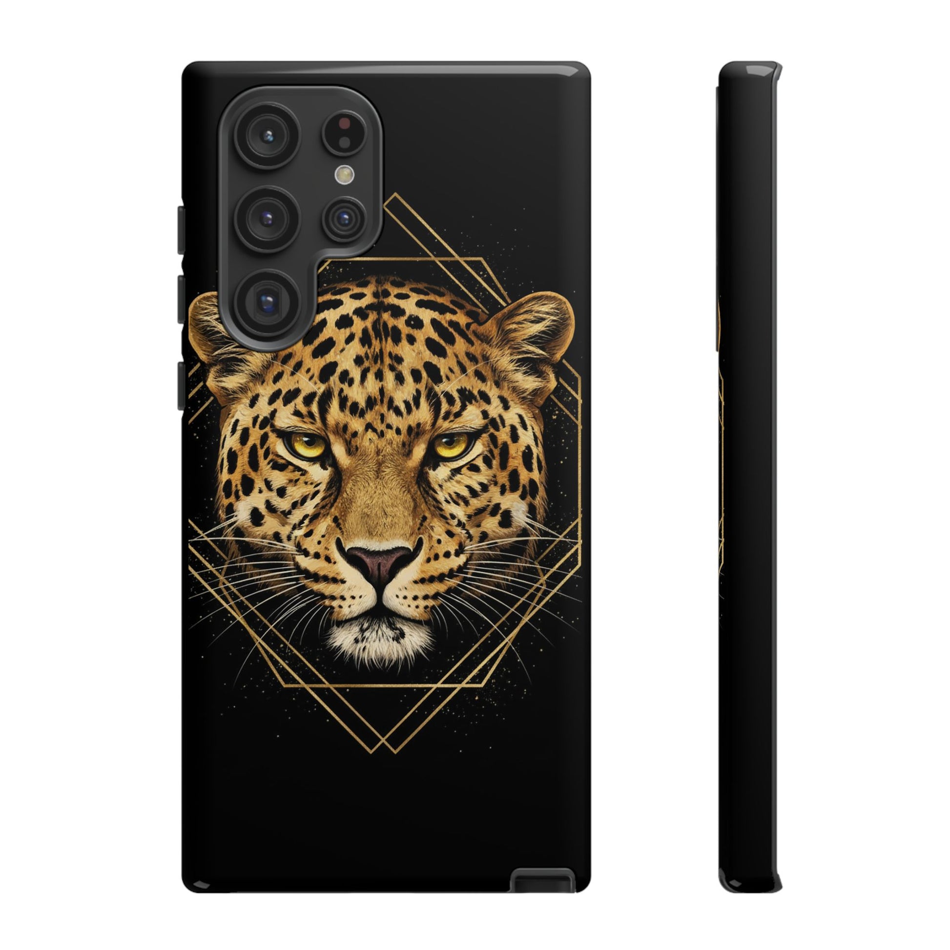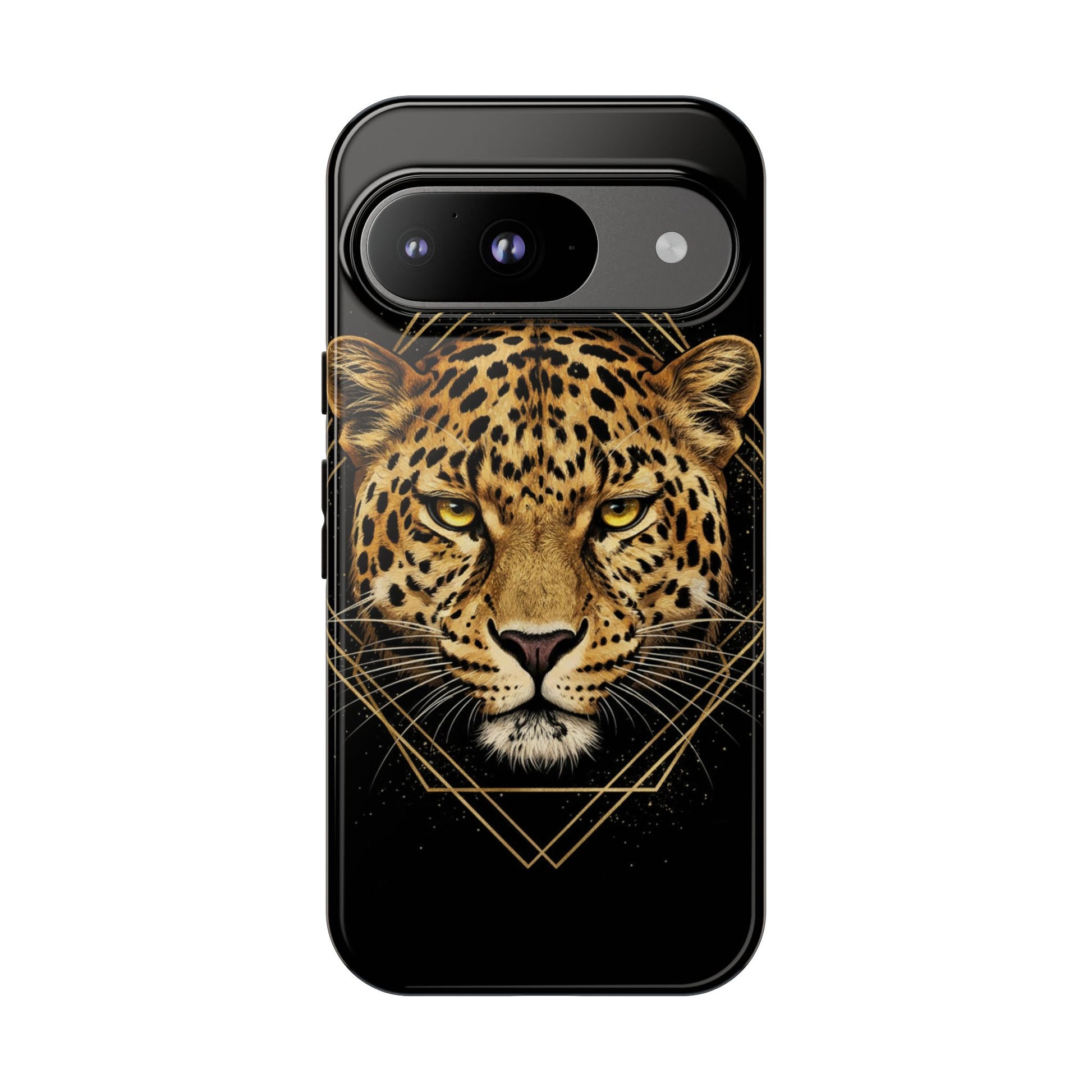 Leopard Head Geometric Phone Case – Black & Gold Luxe Tough Case
