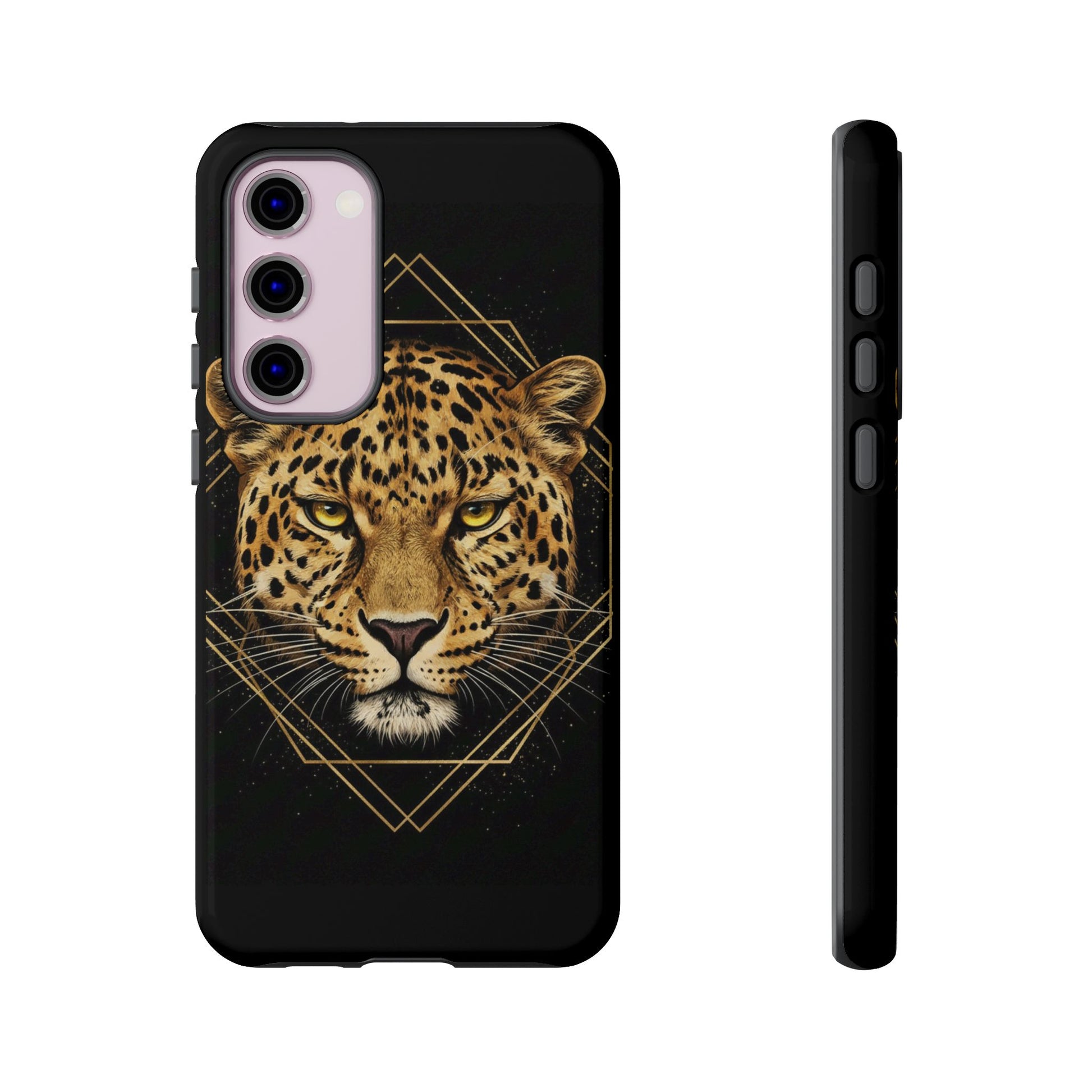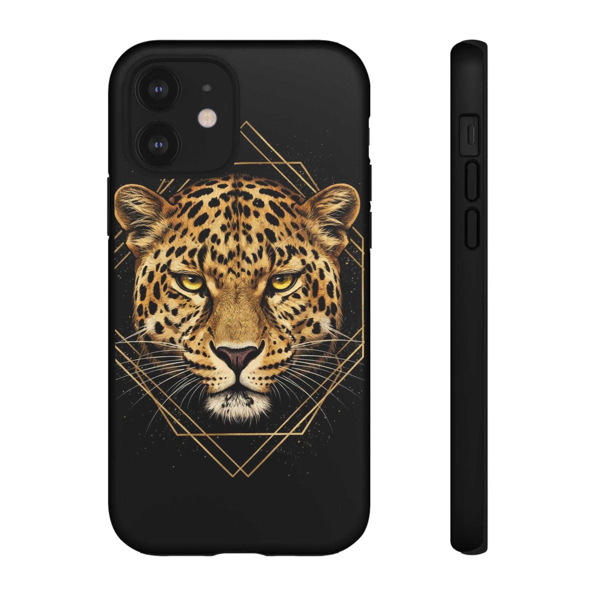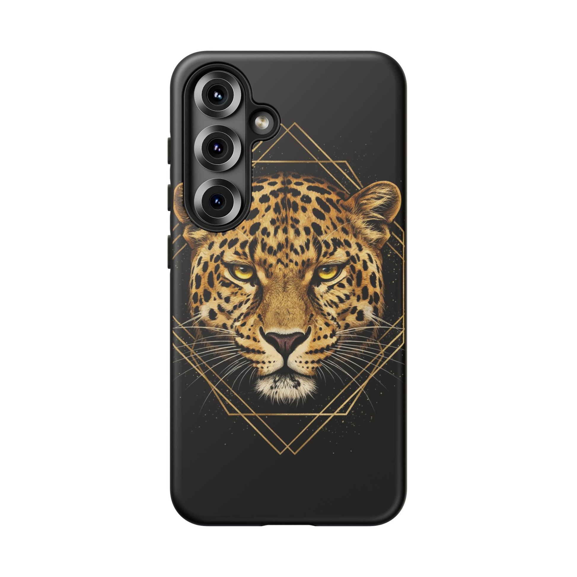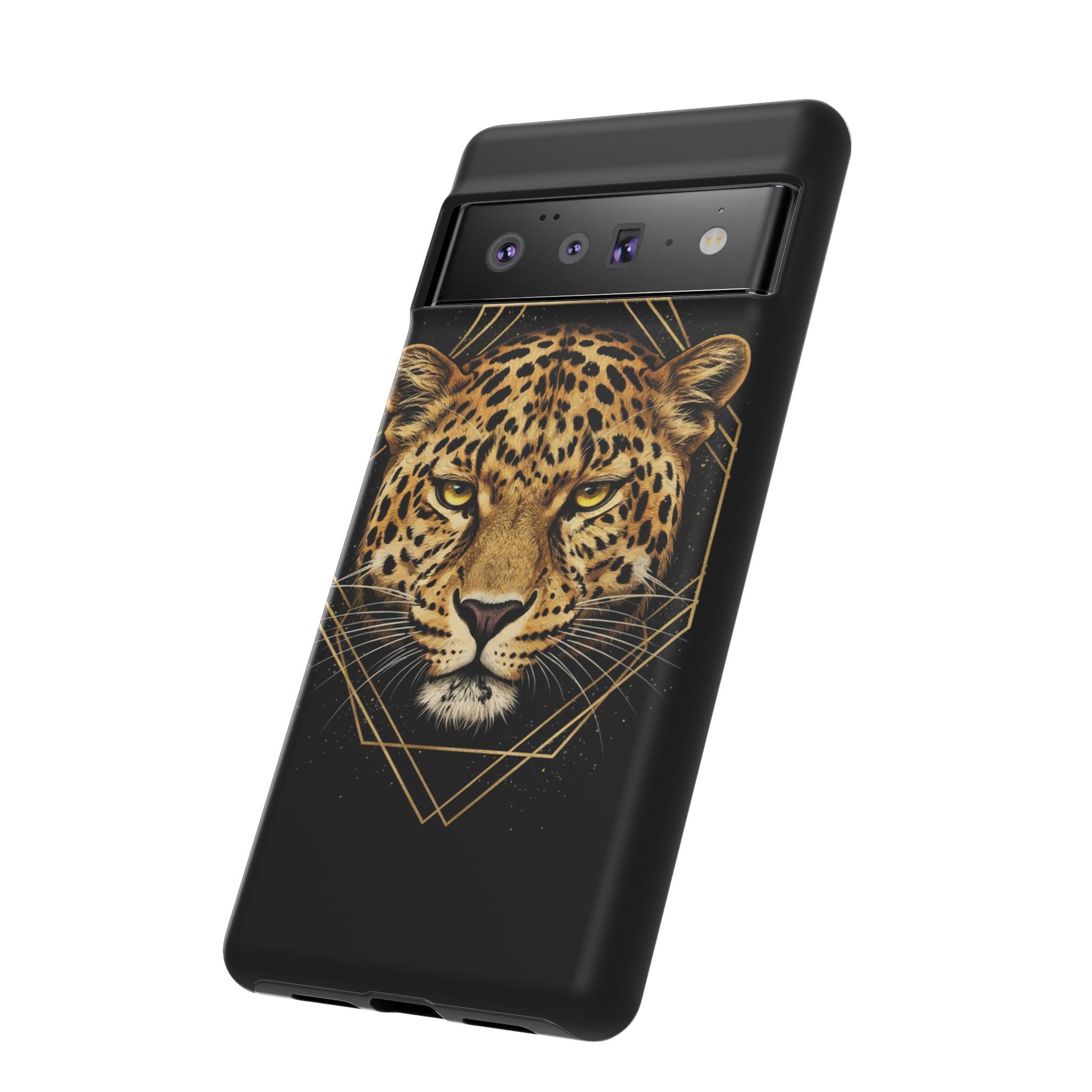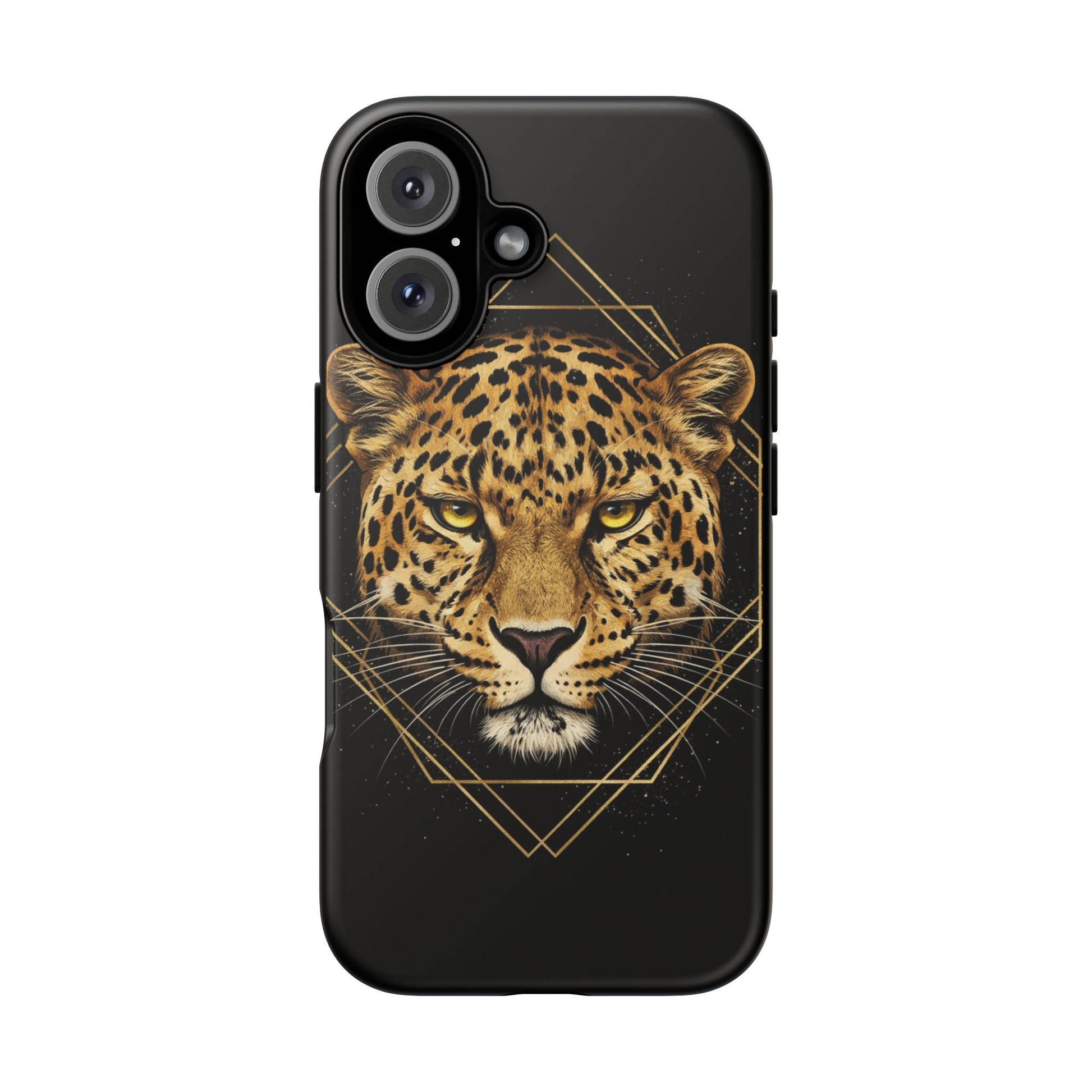 Leopard Head Geometric Phone Case – Black & Gold Luxe Tough Case