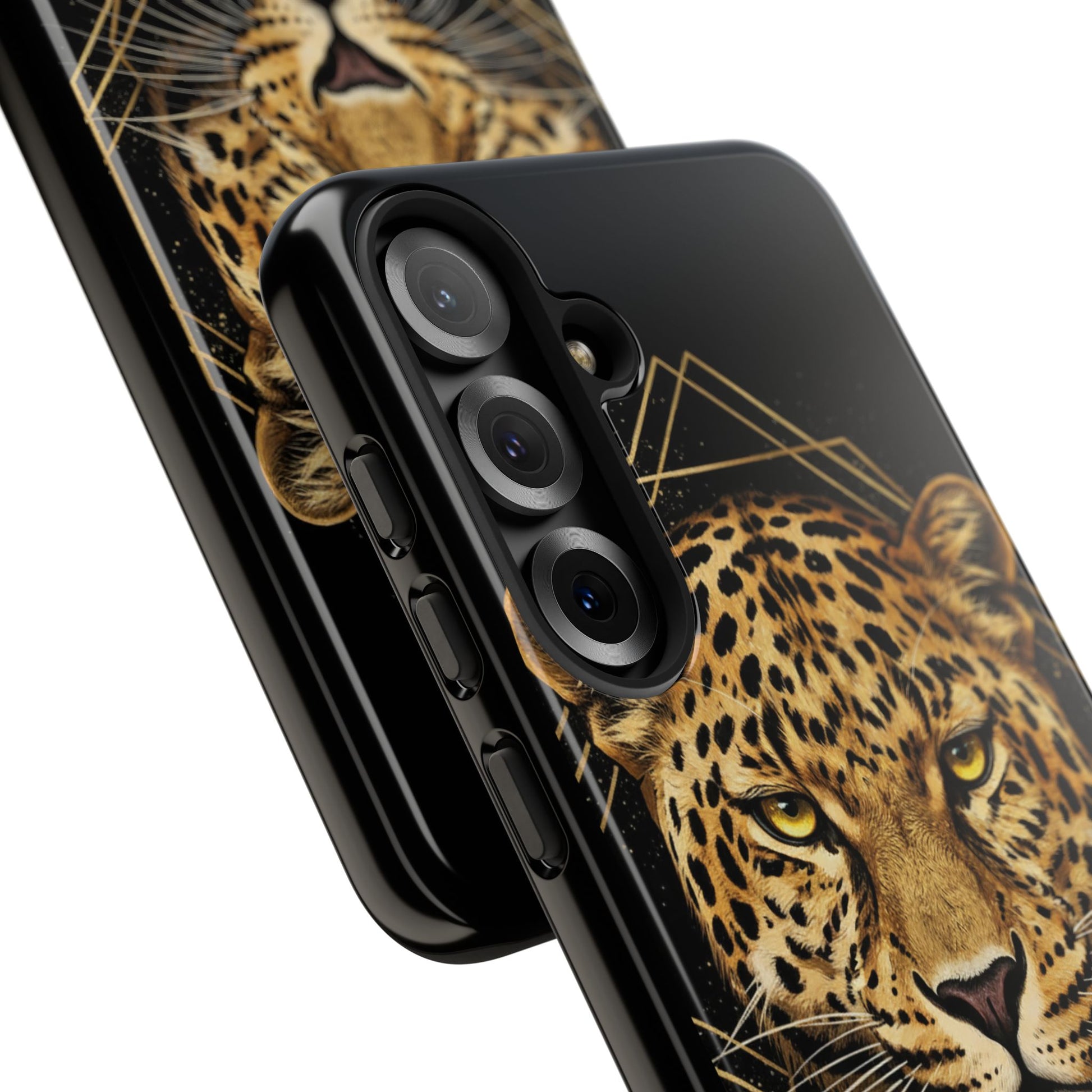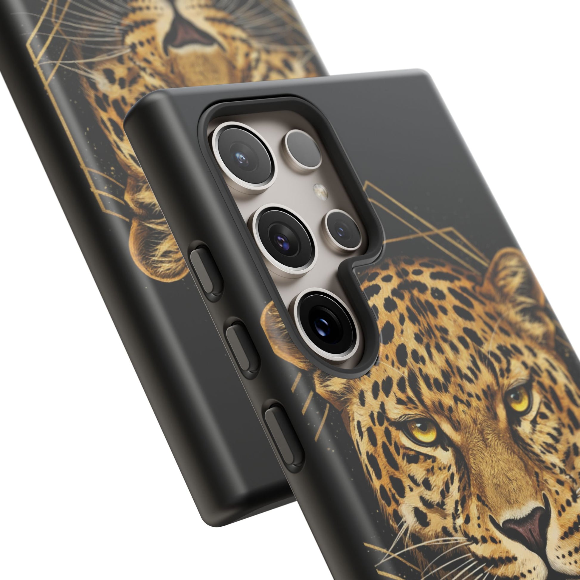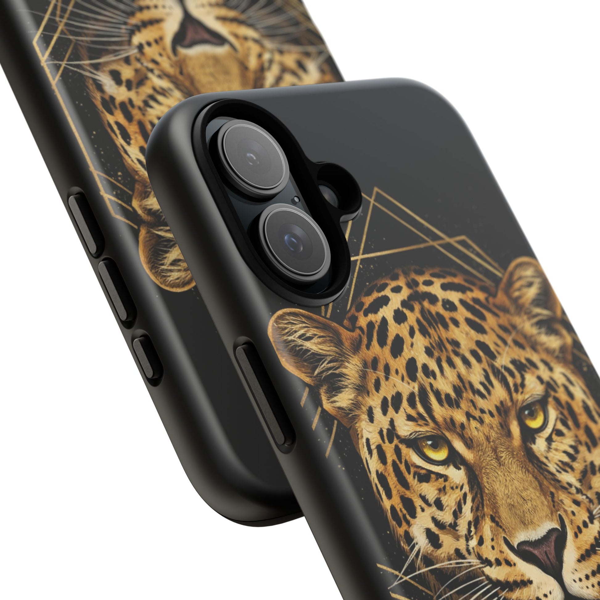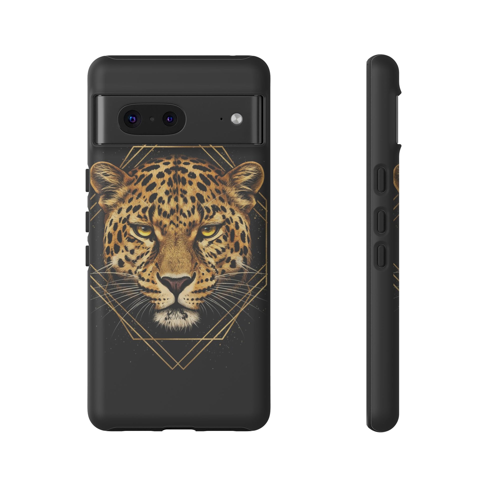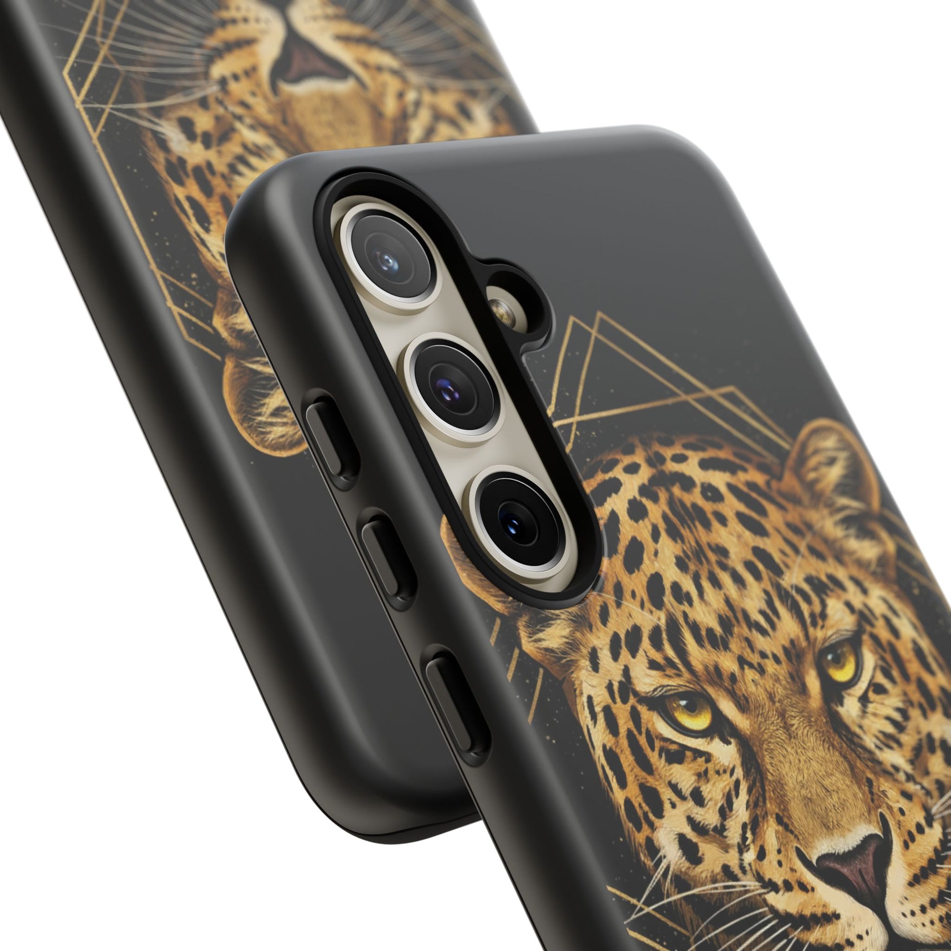 Leopard Head Geometric Phone Case – Black & Gold Luxe Tough Case