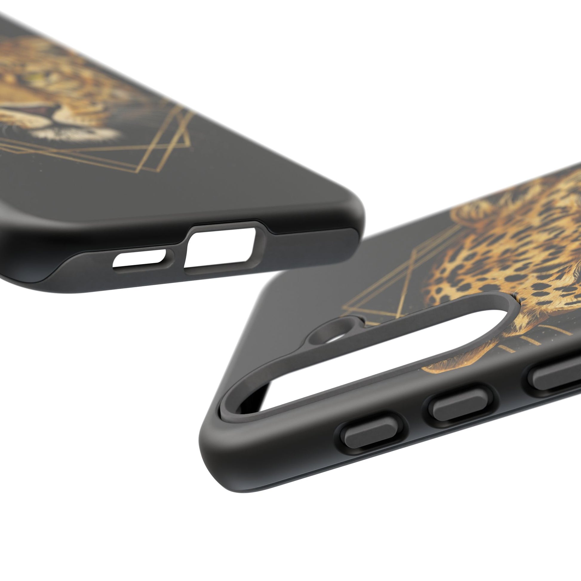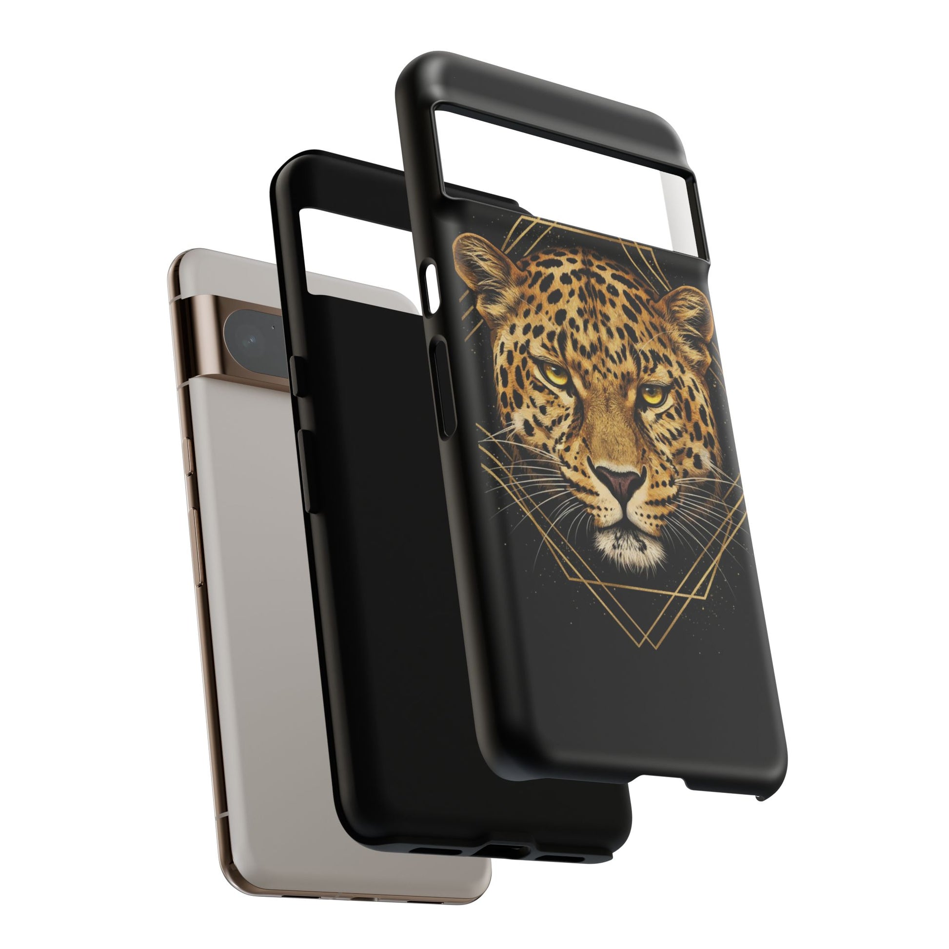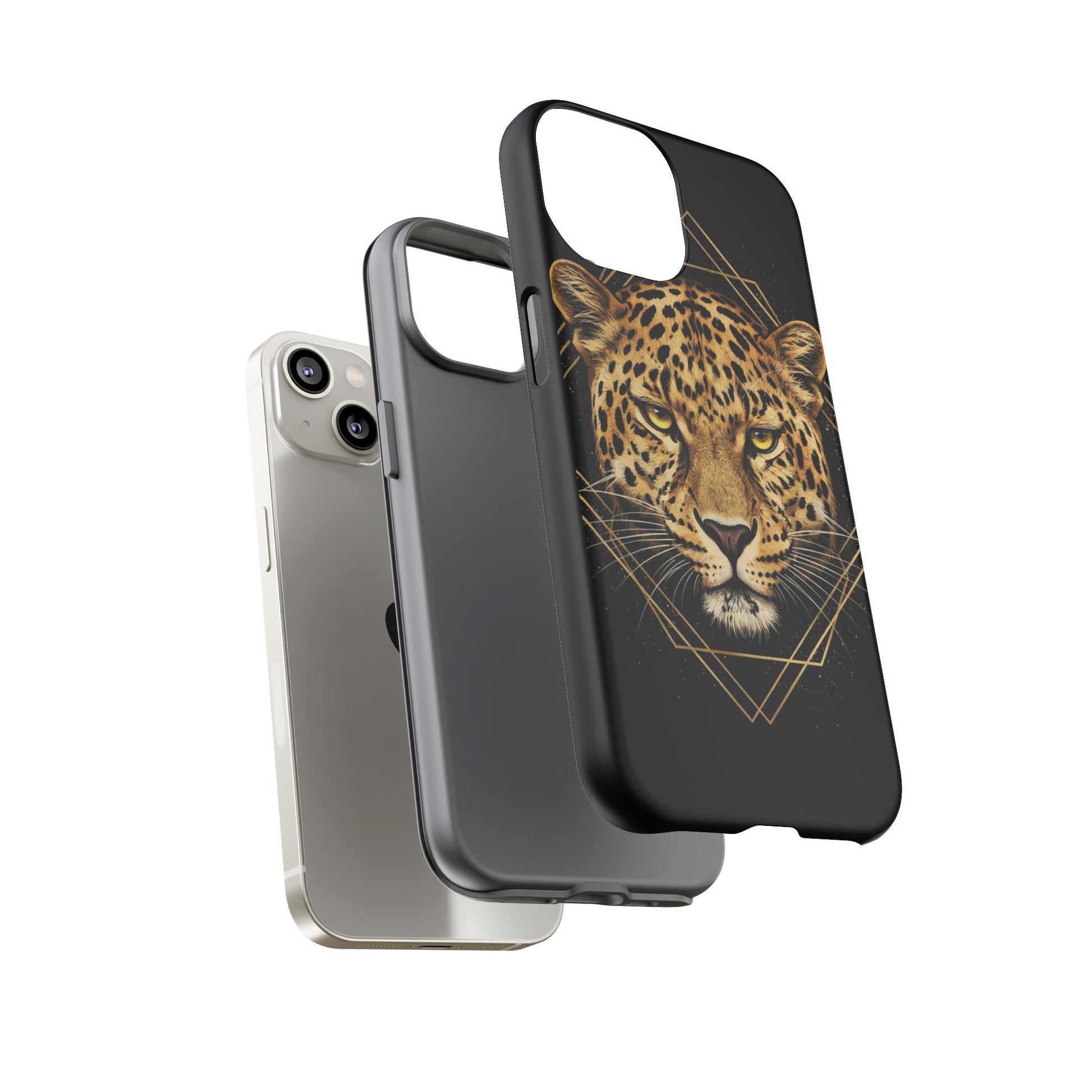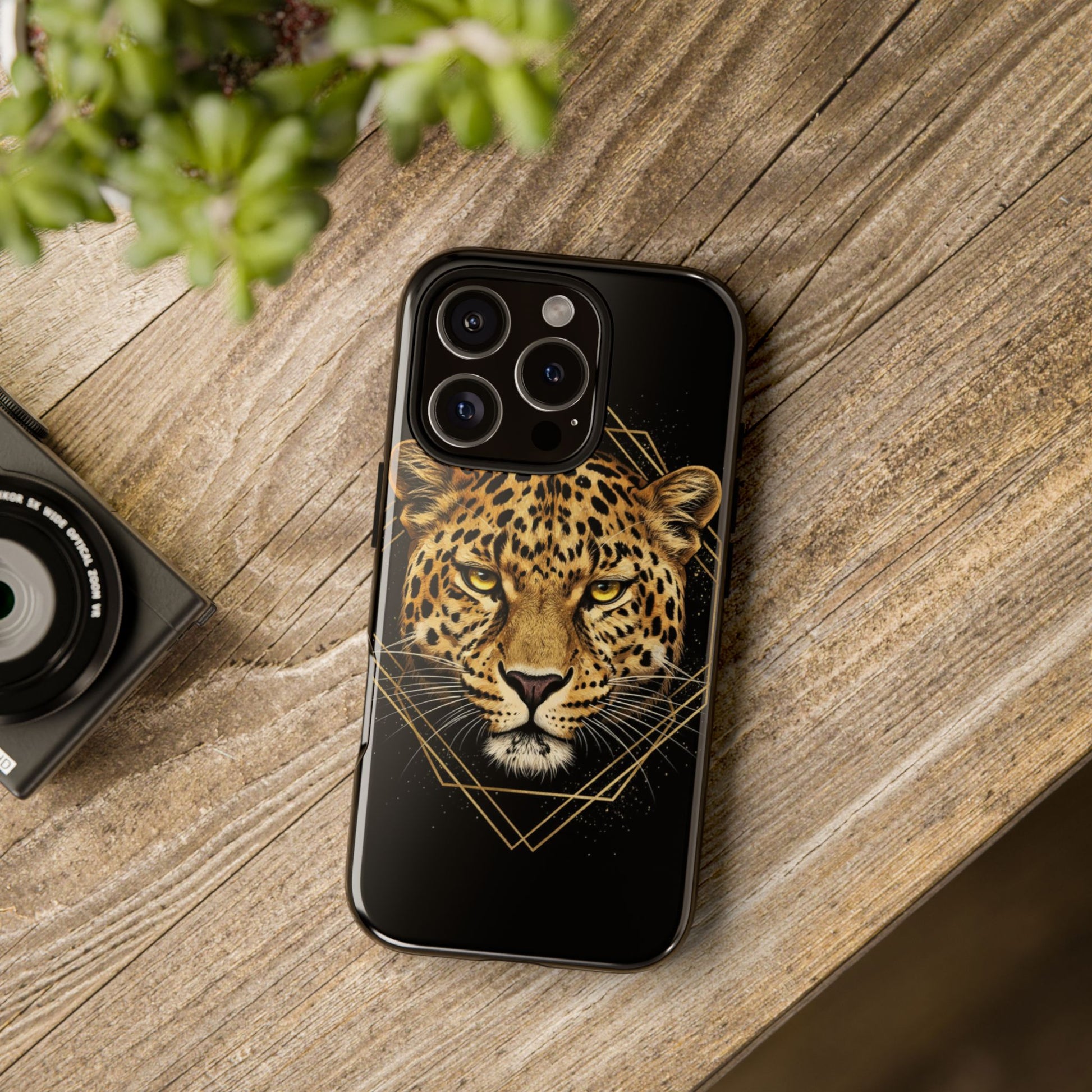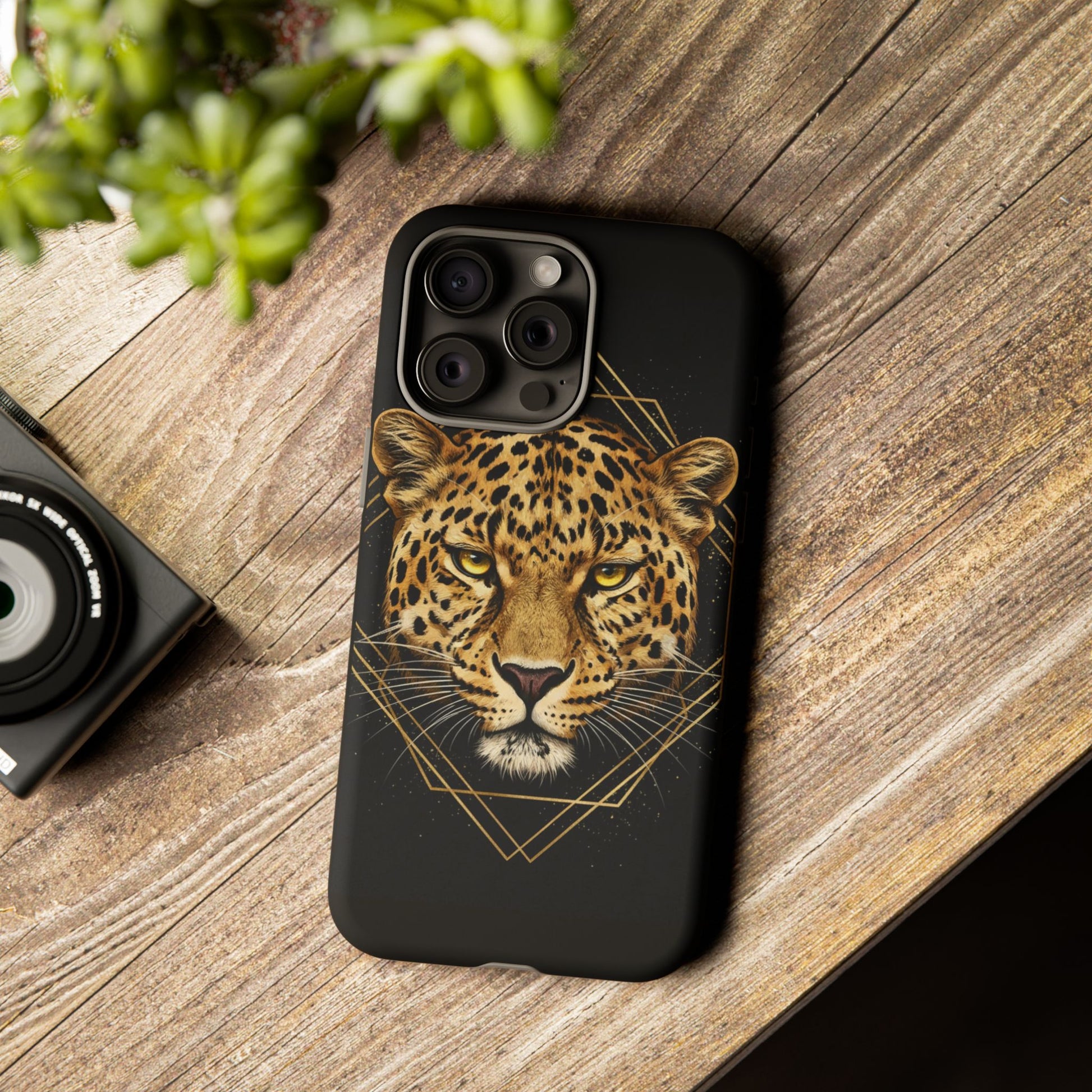Leopard Head Geometric Phone Case – Black & Gold Luxe Tough Case
