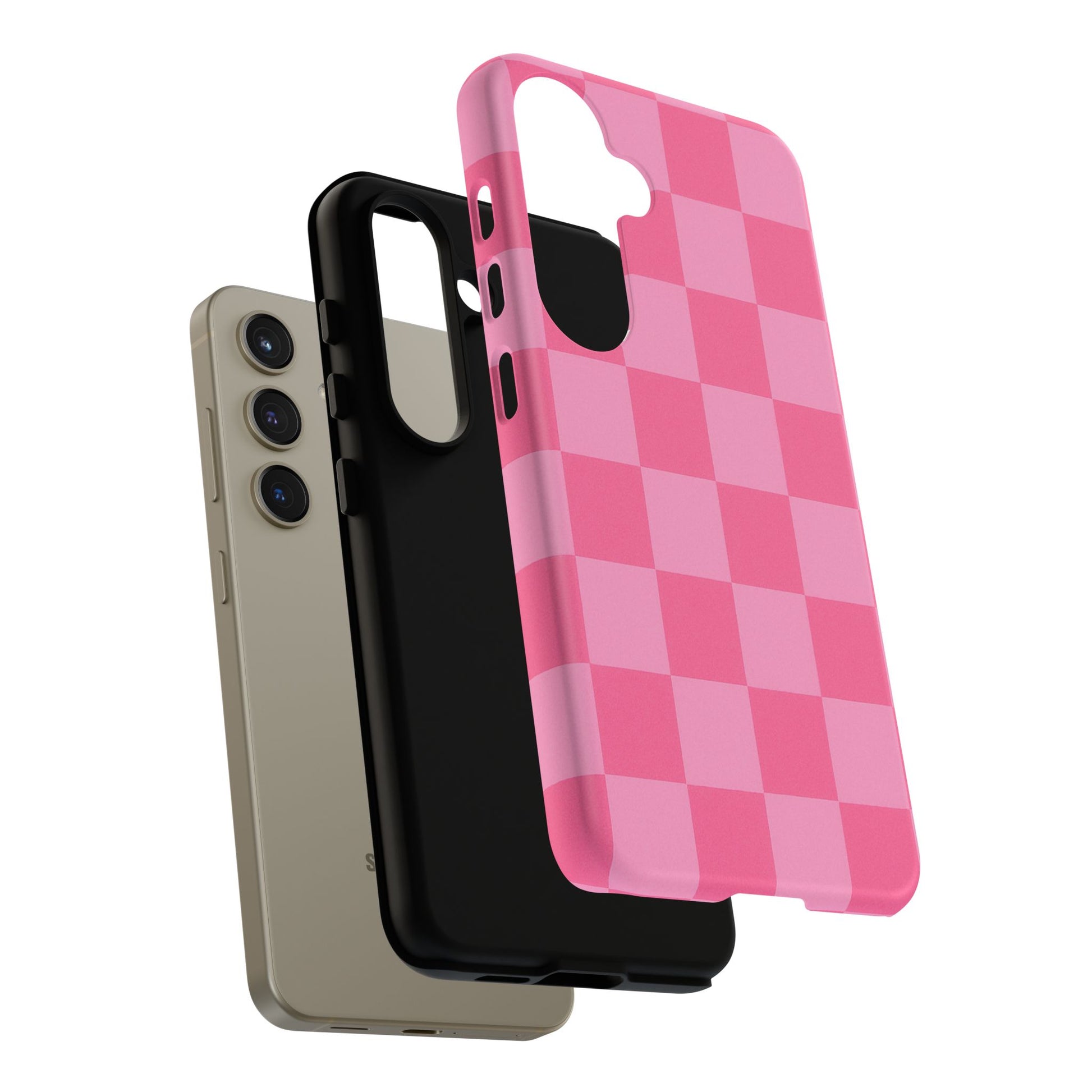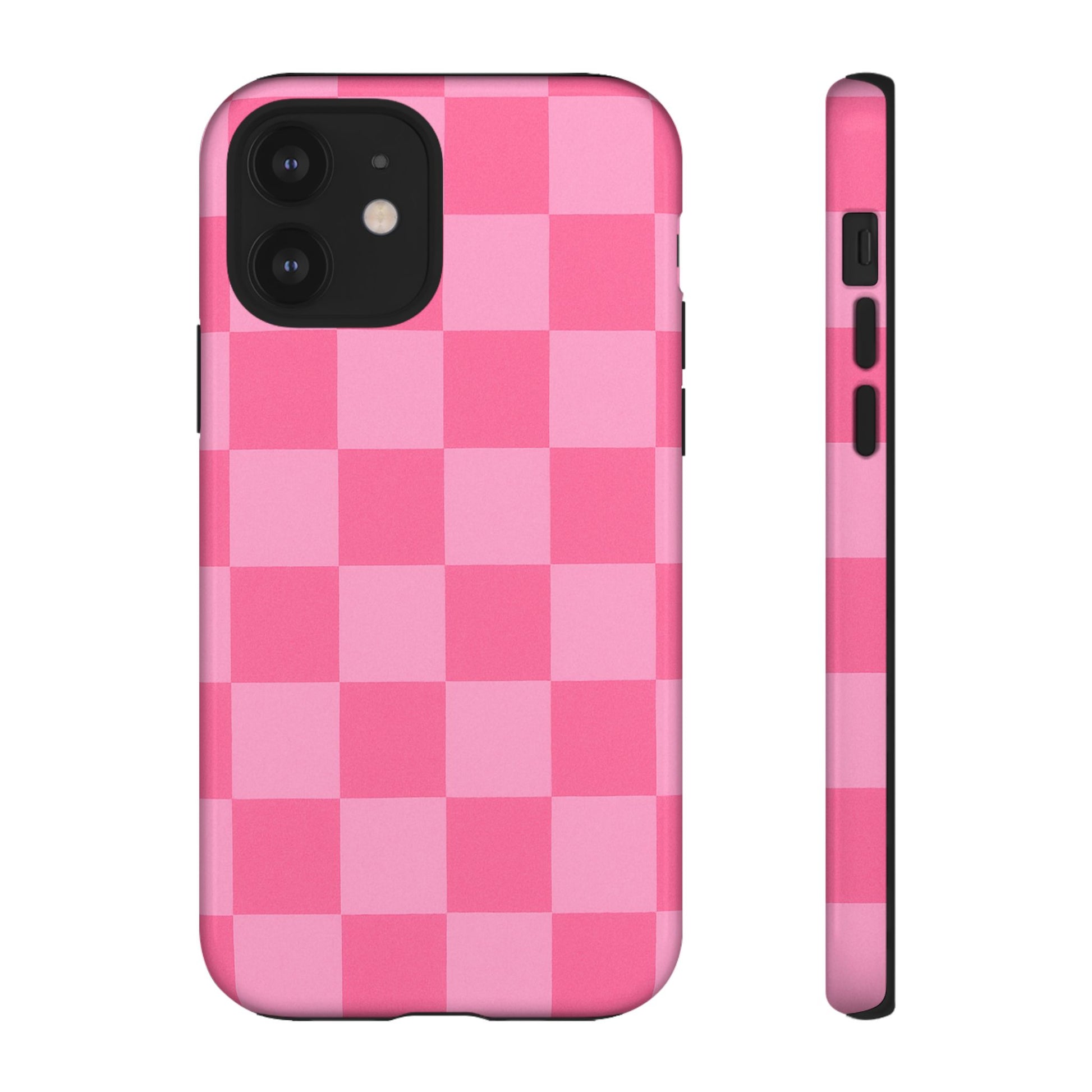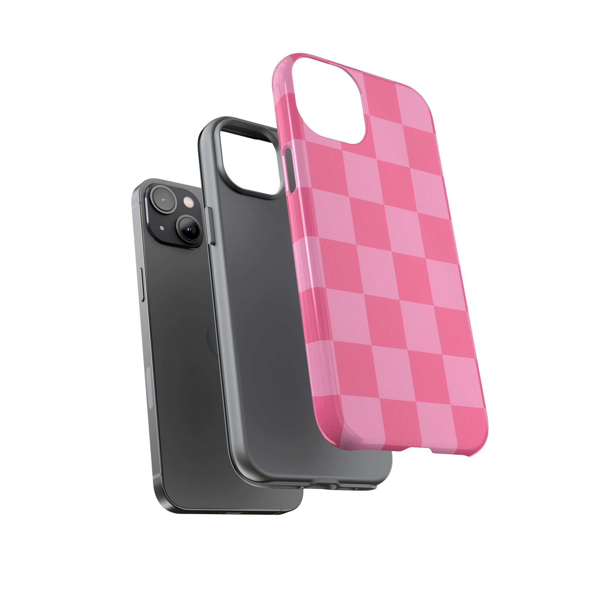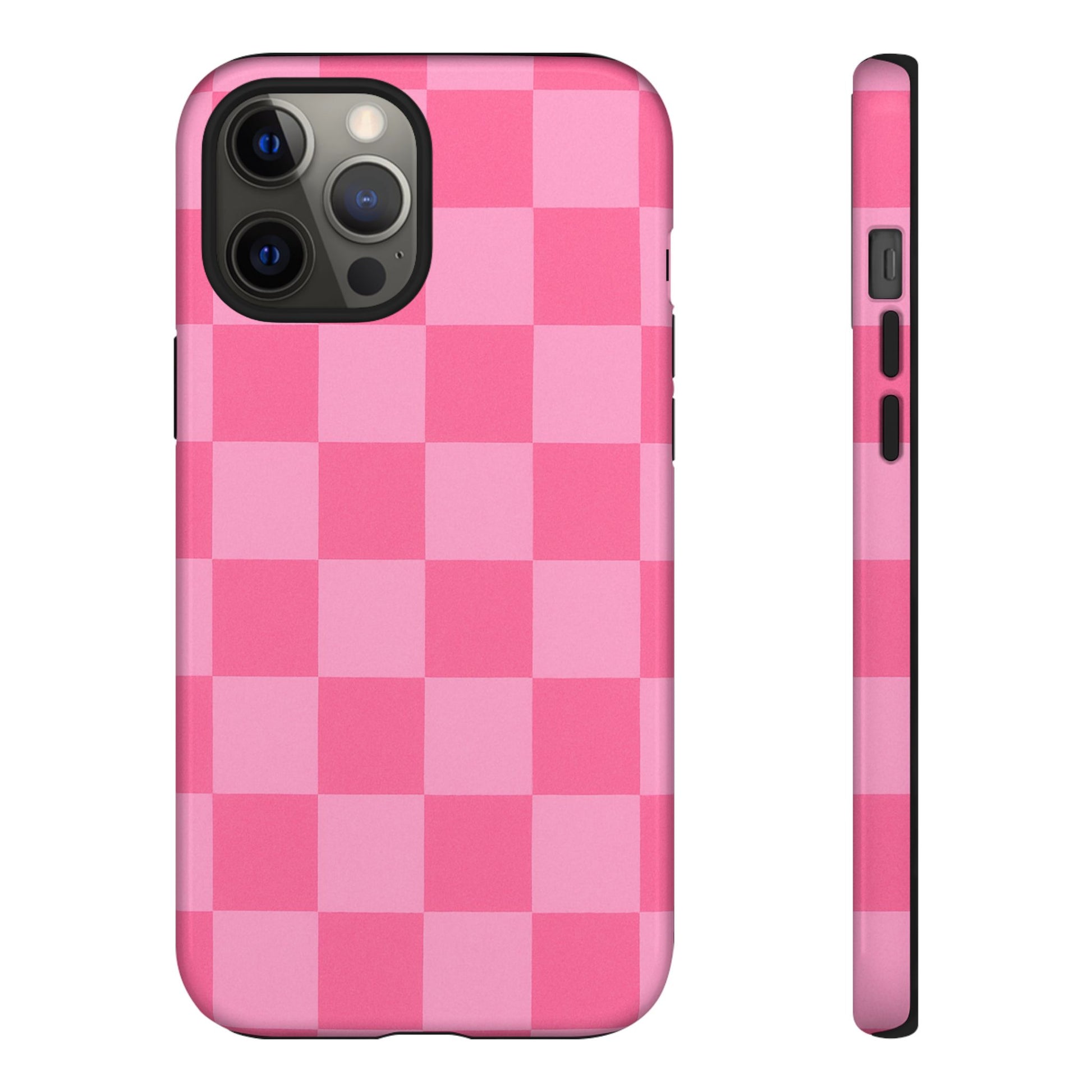 Pink Checkerboard Phone Case – Cute Aesthetic Tough Case for iPhone & Samsung