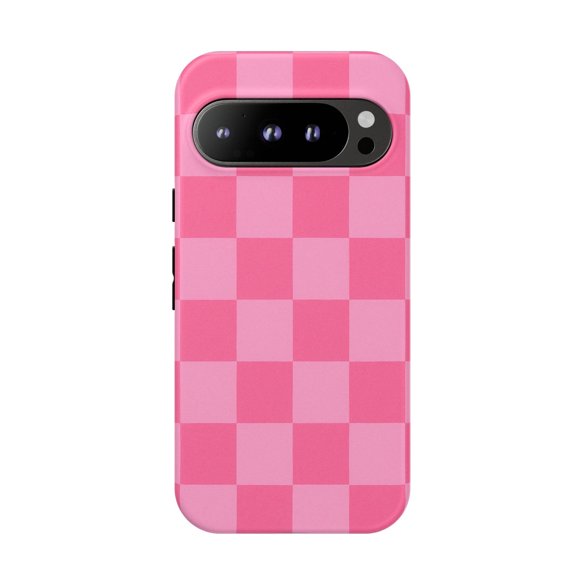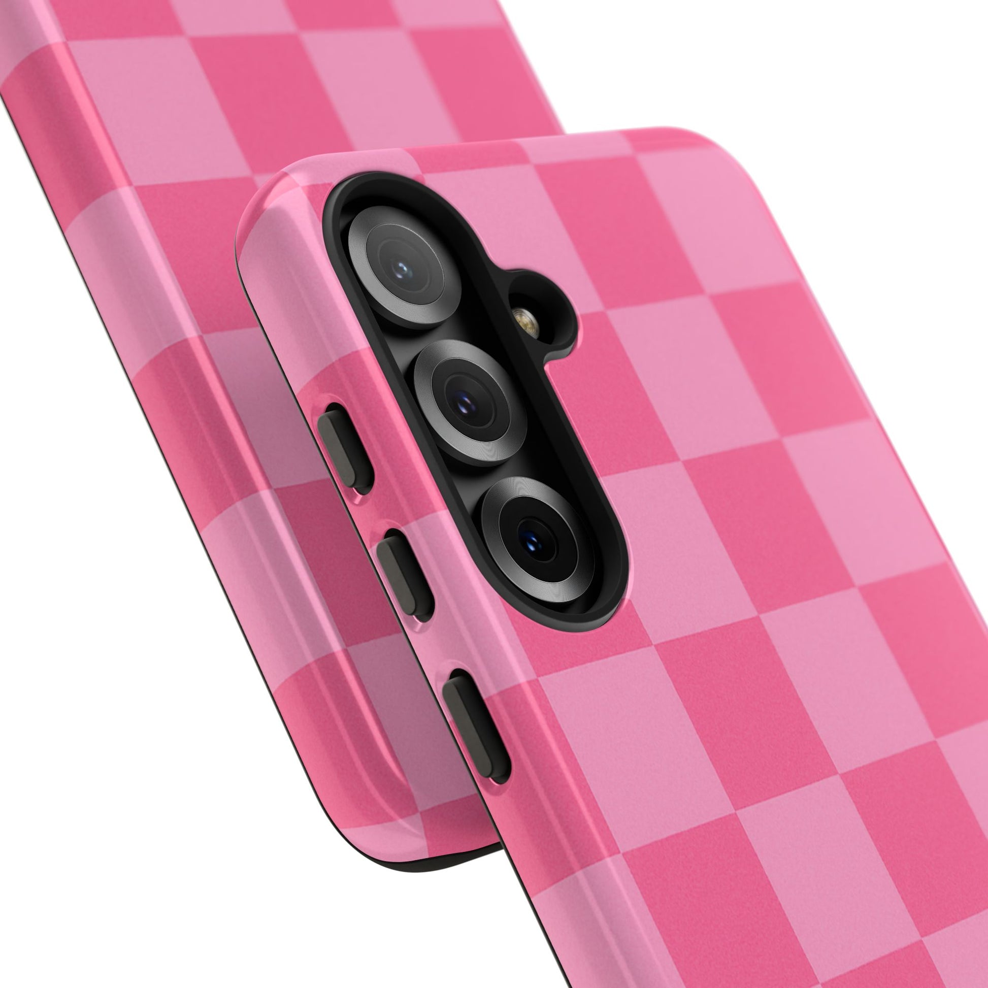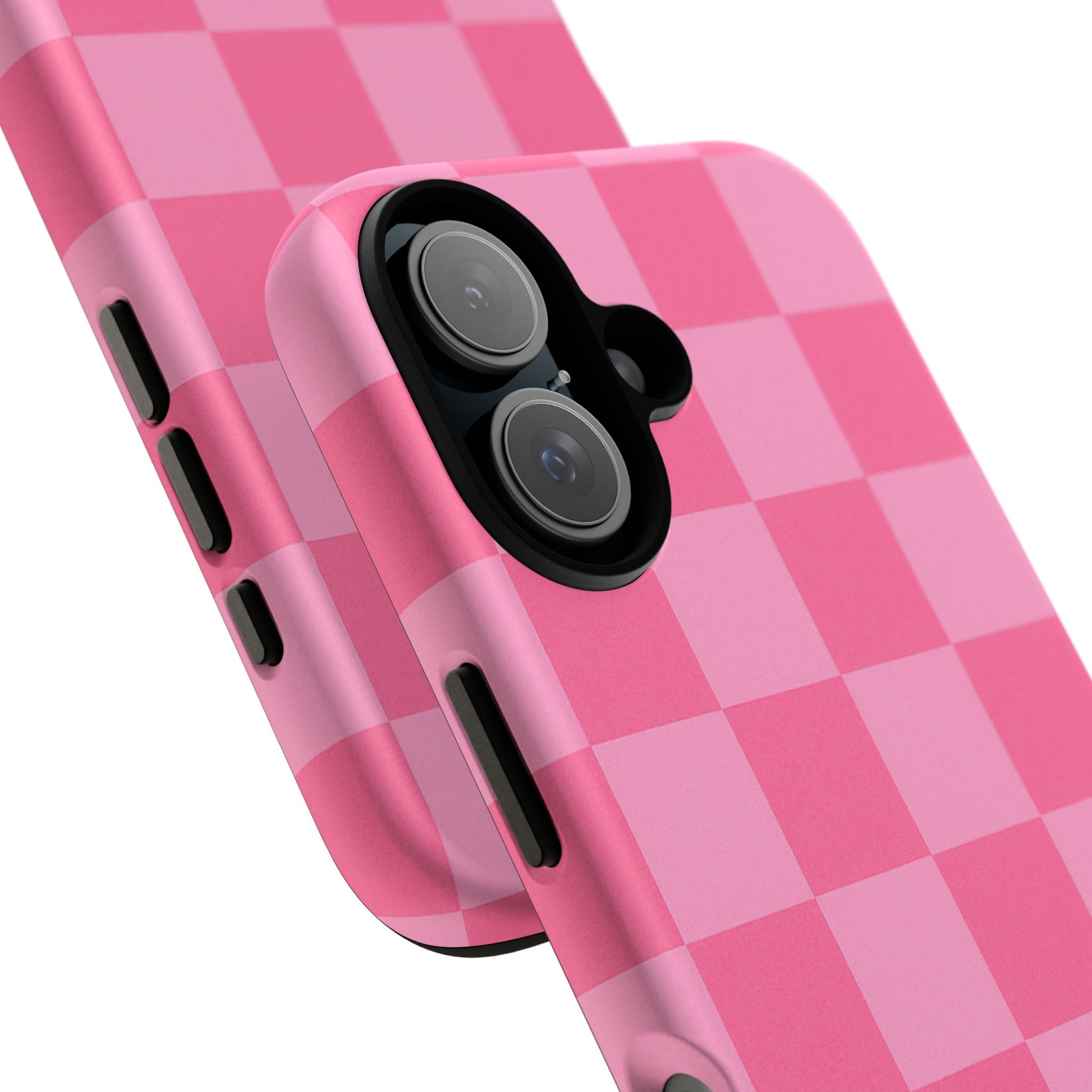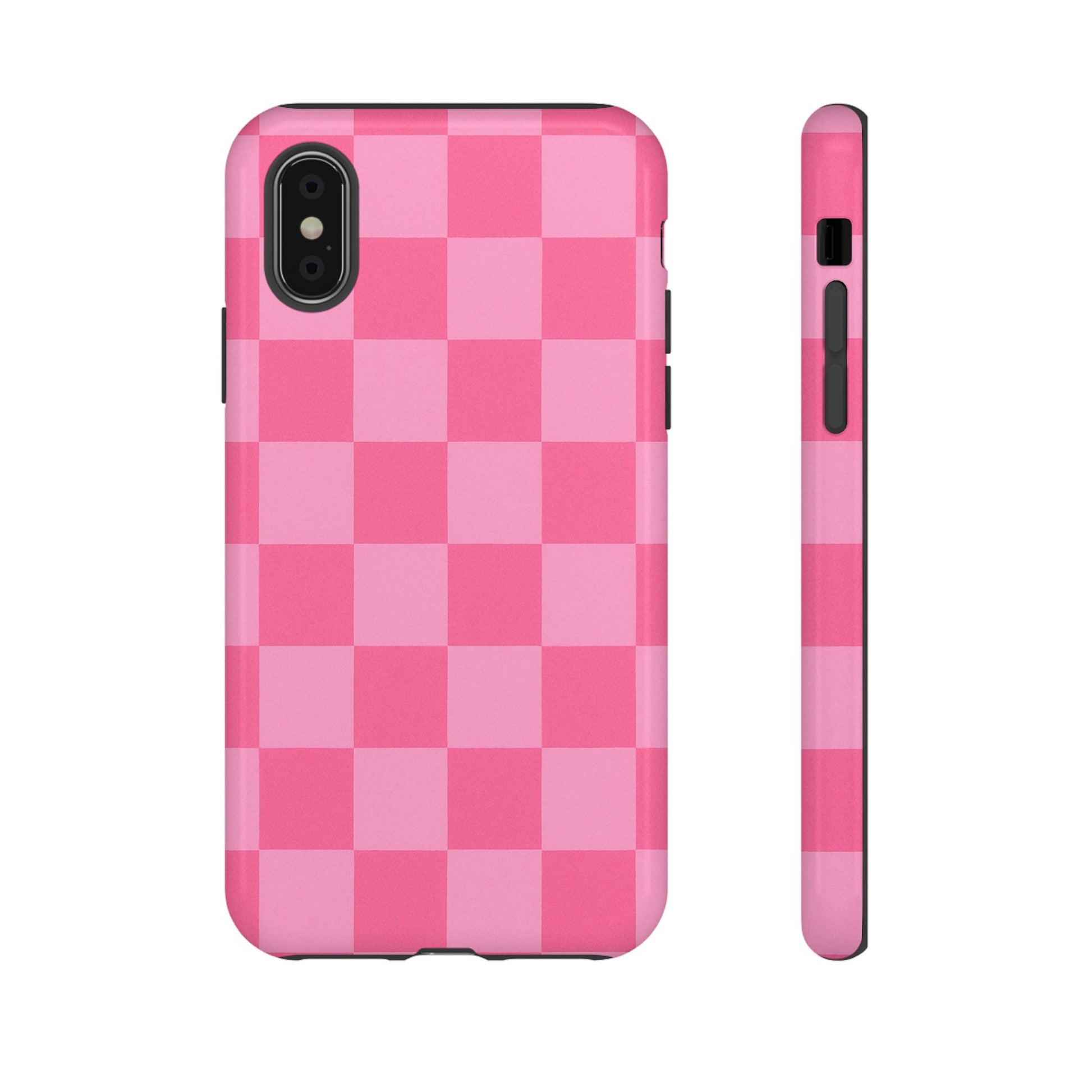 Pink Checkerboard Phone Case – Cute Aesthetic Tough Case for iPhone & Samsung