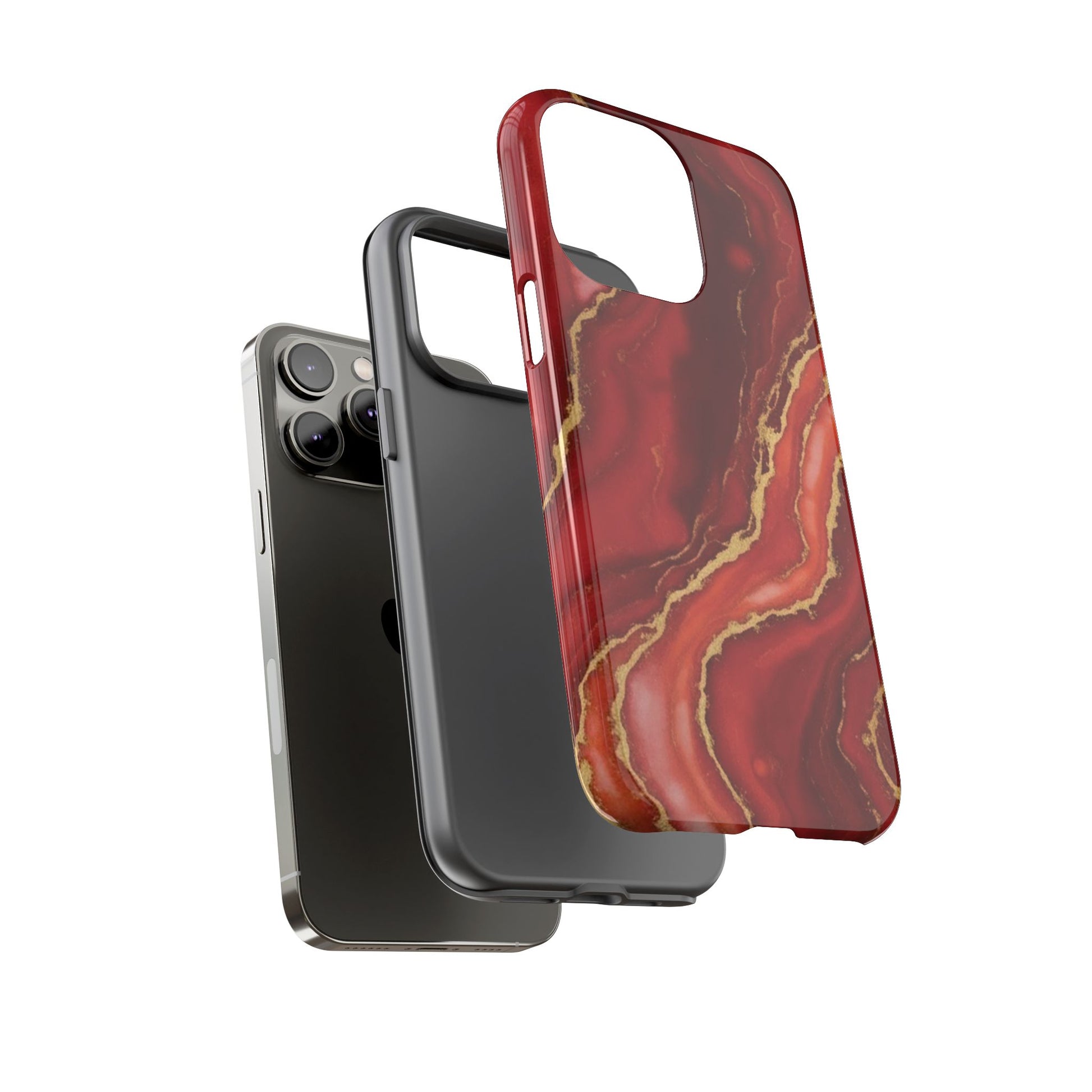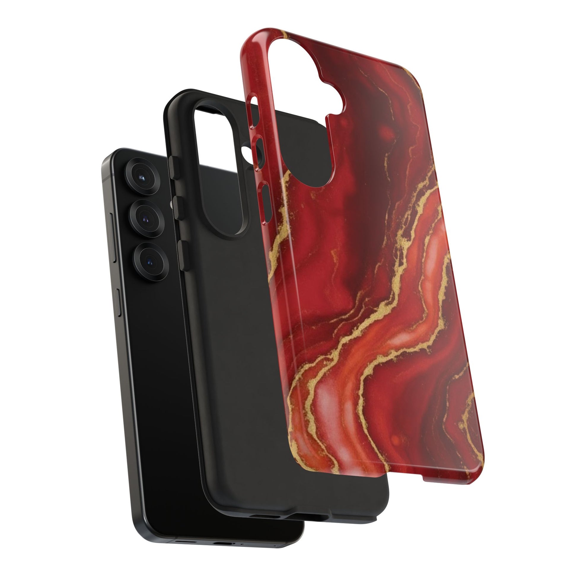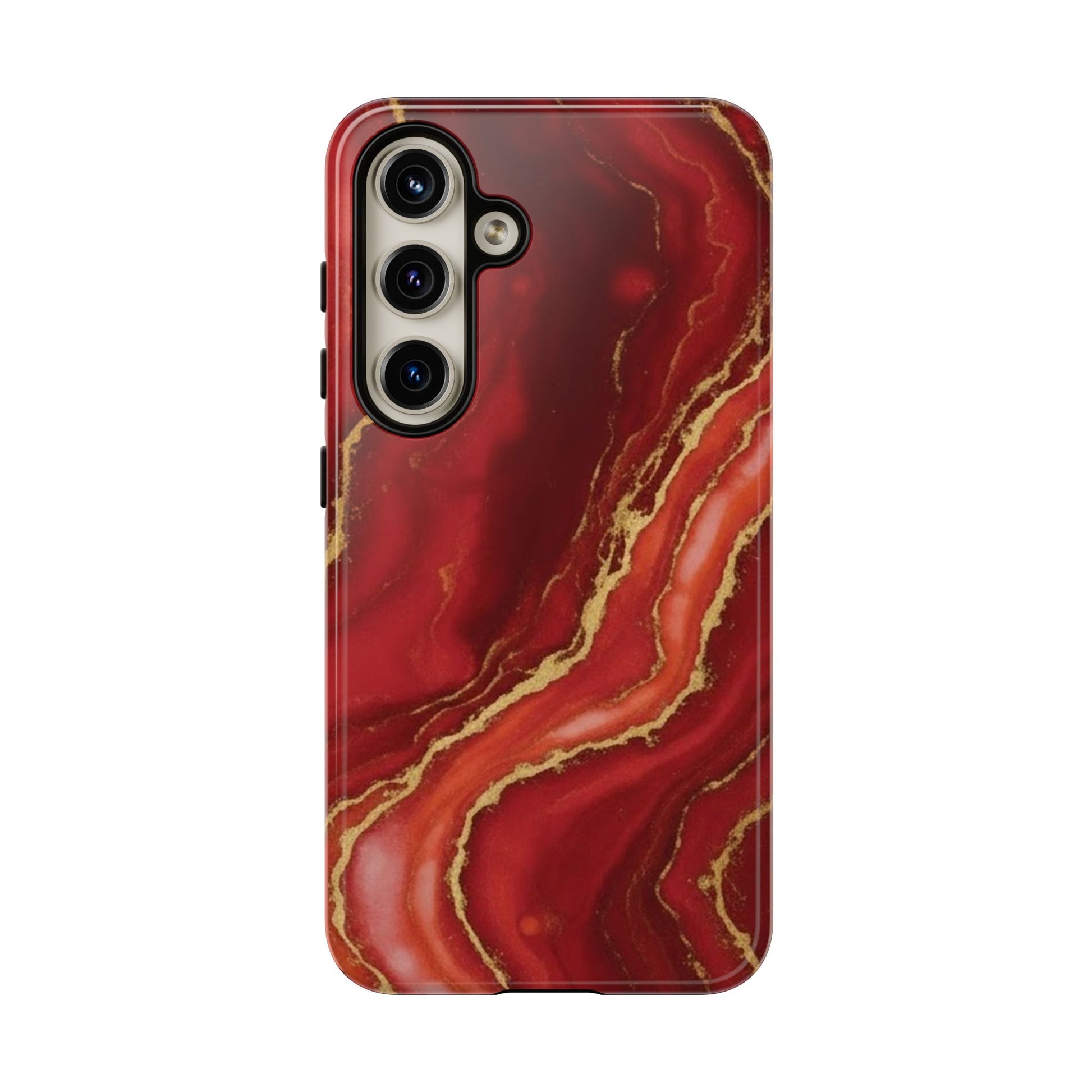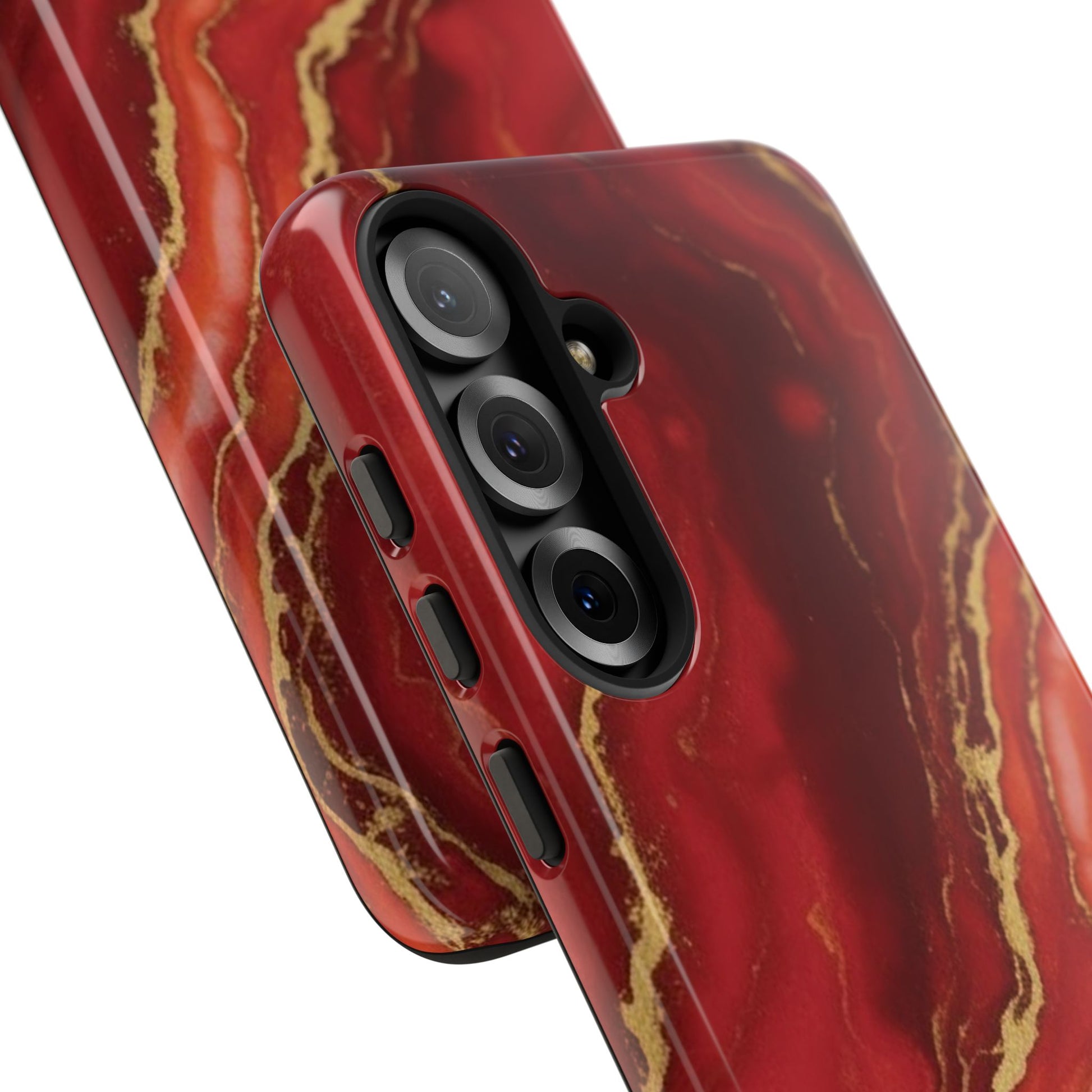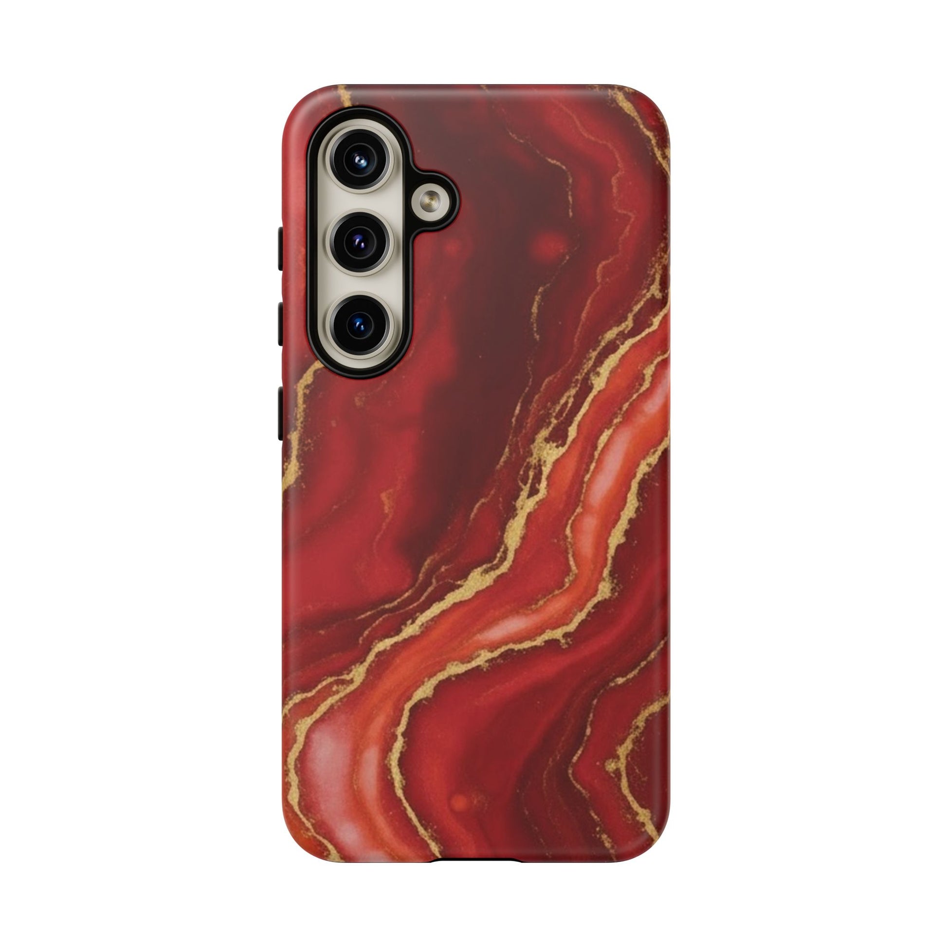 Red Agate Marble Phone Case with Gold Veins – Luxury Tough iPhone & Samsung Case