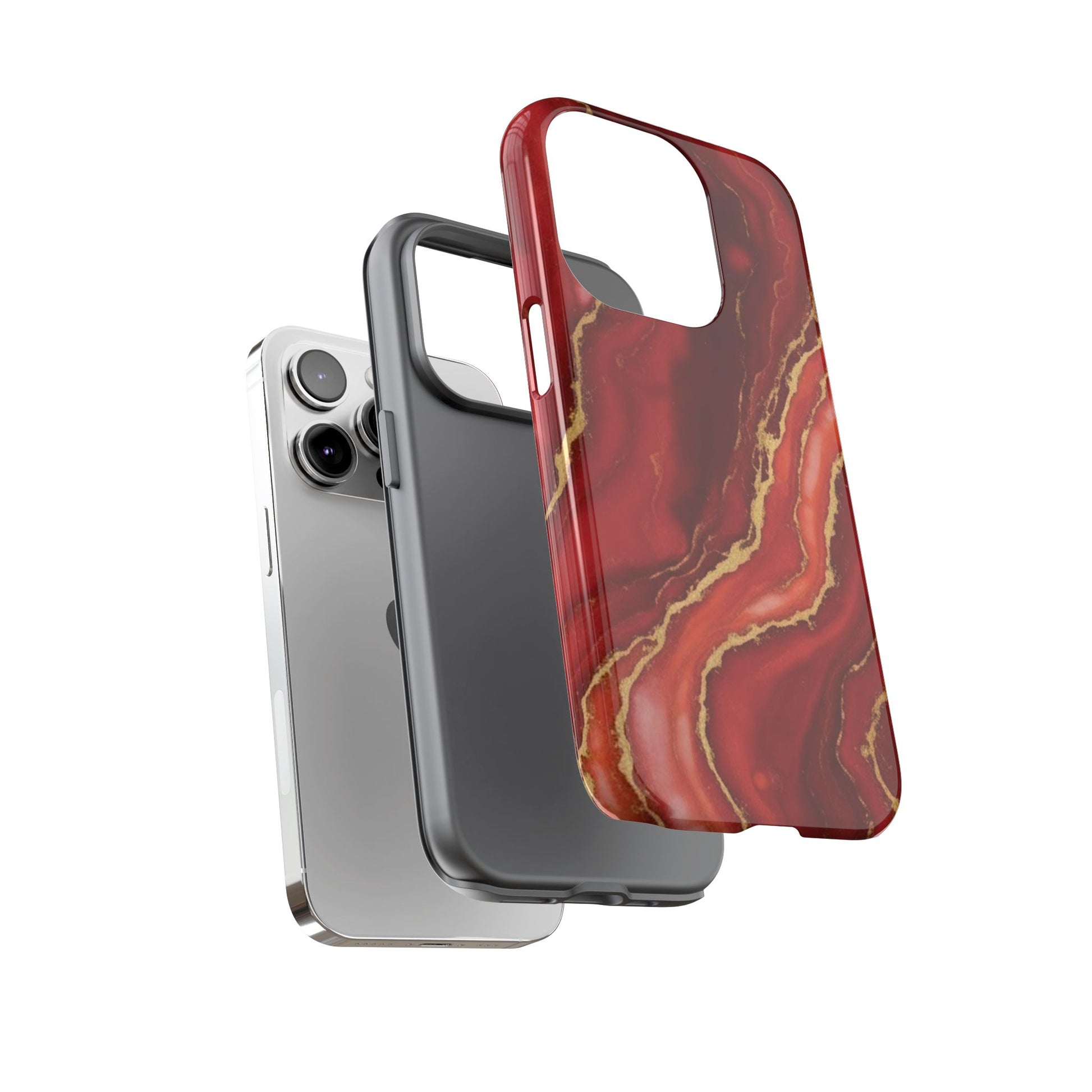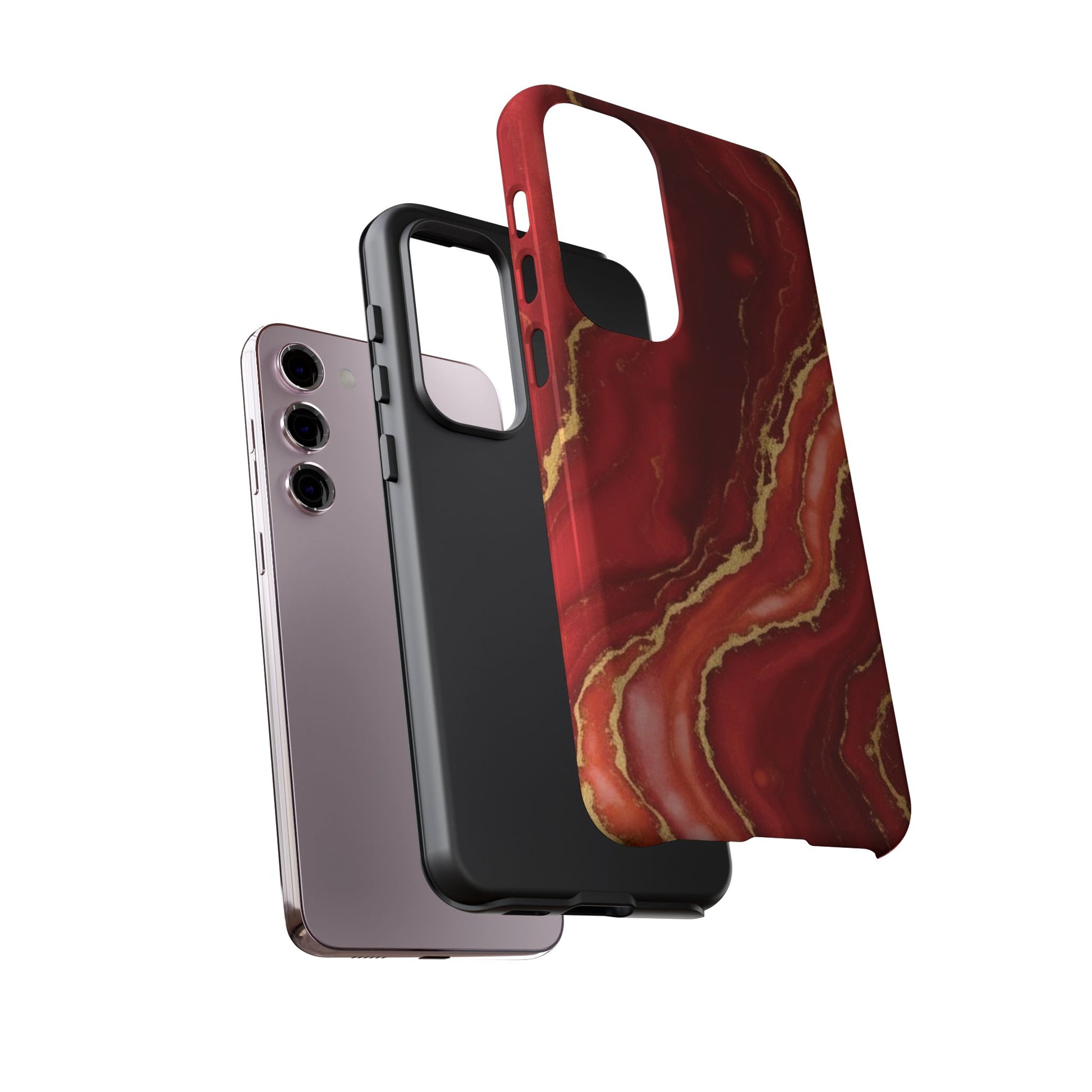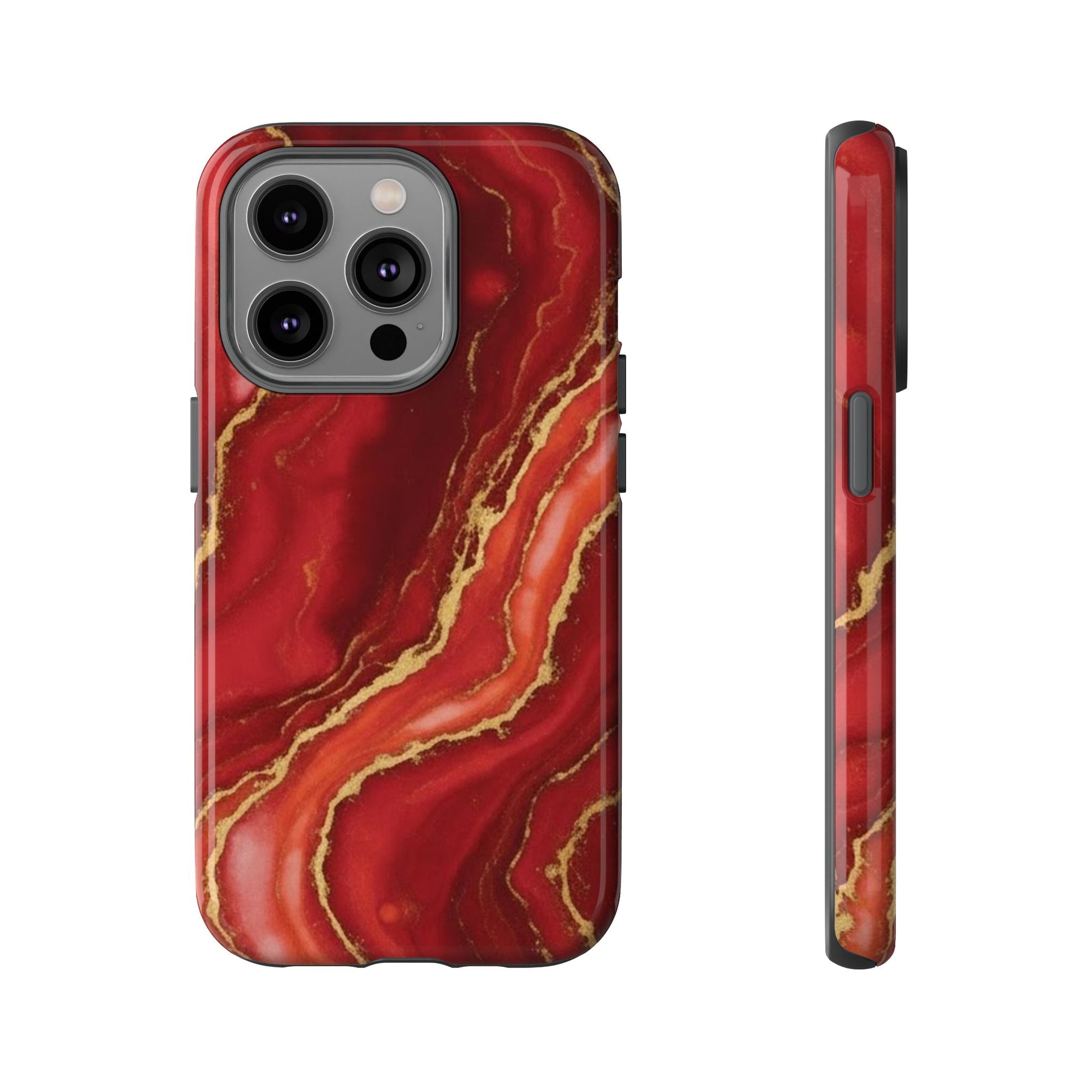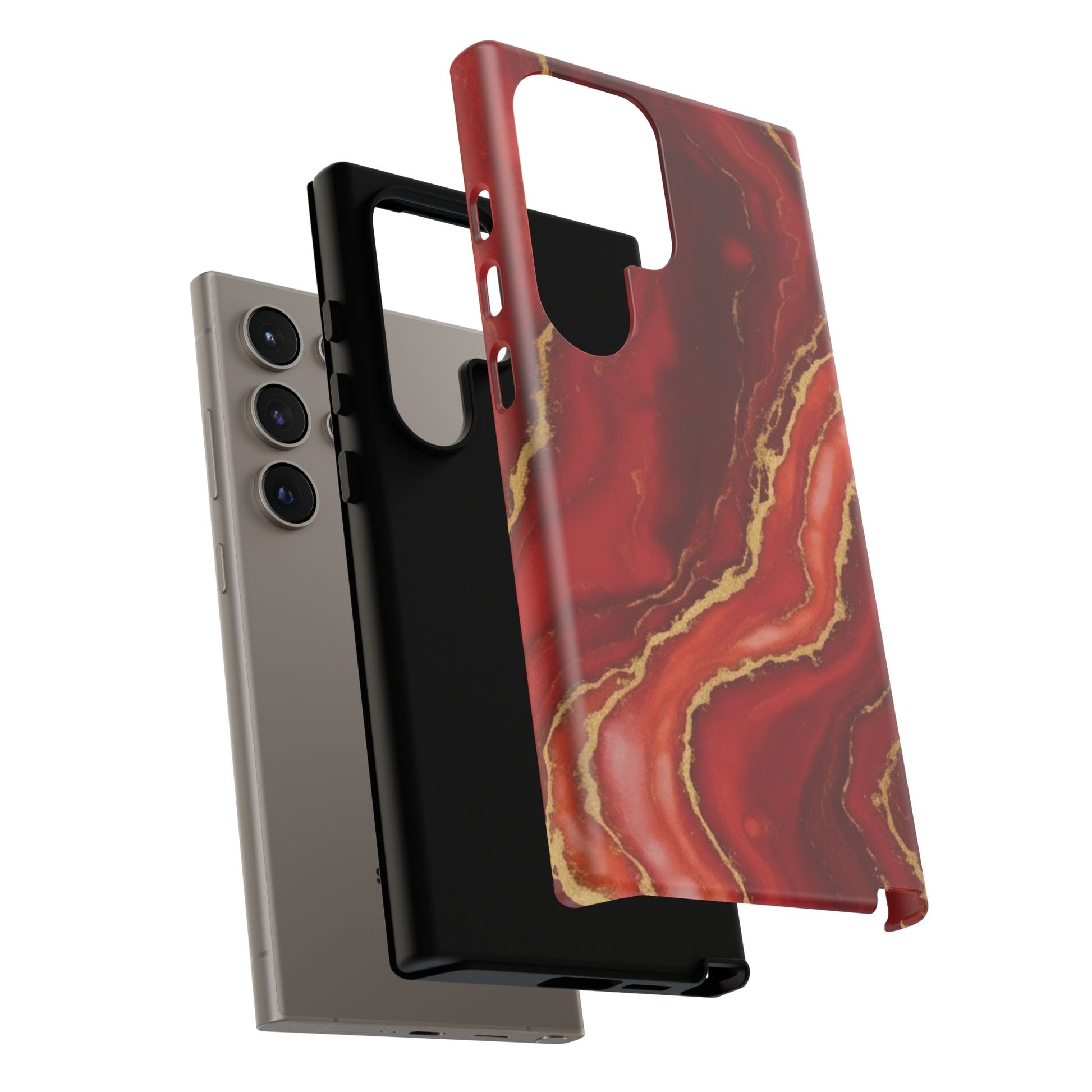Red Agate Marble Phone Case with Gold Veins – Luxury Tough iPhone & Samsung Case