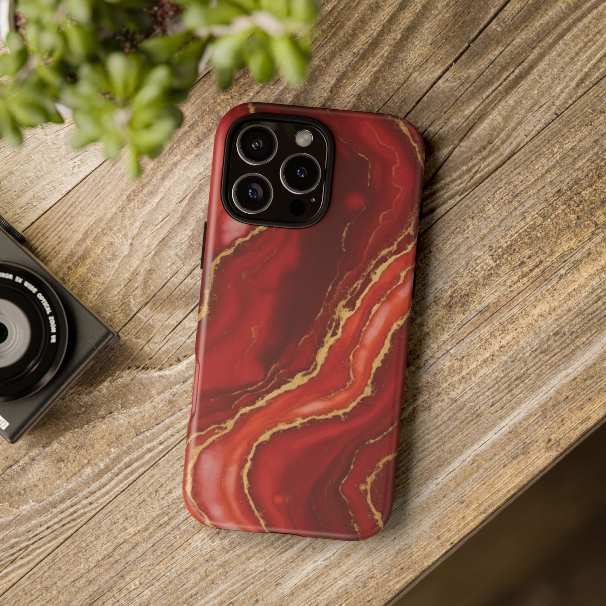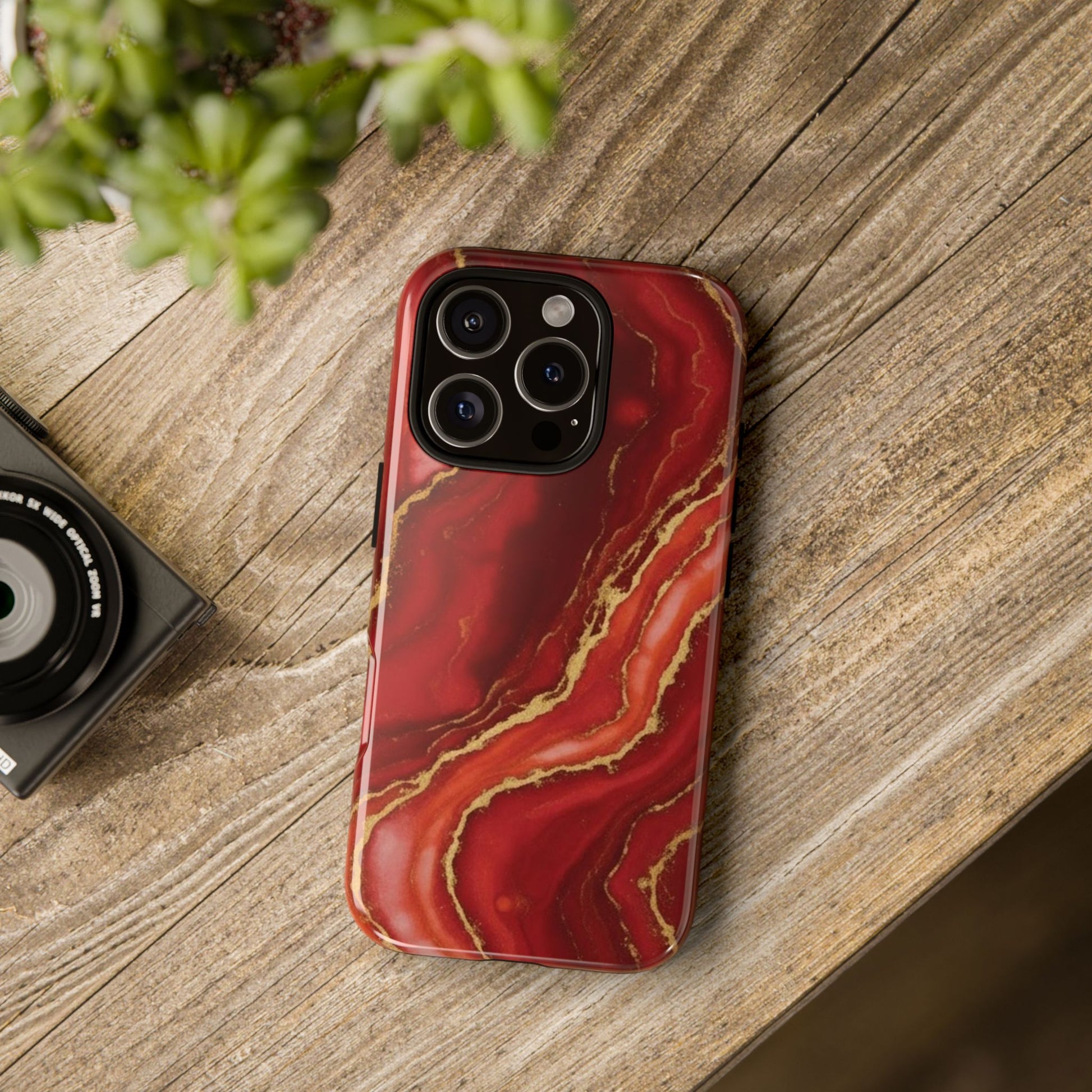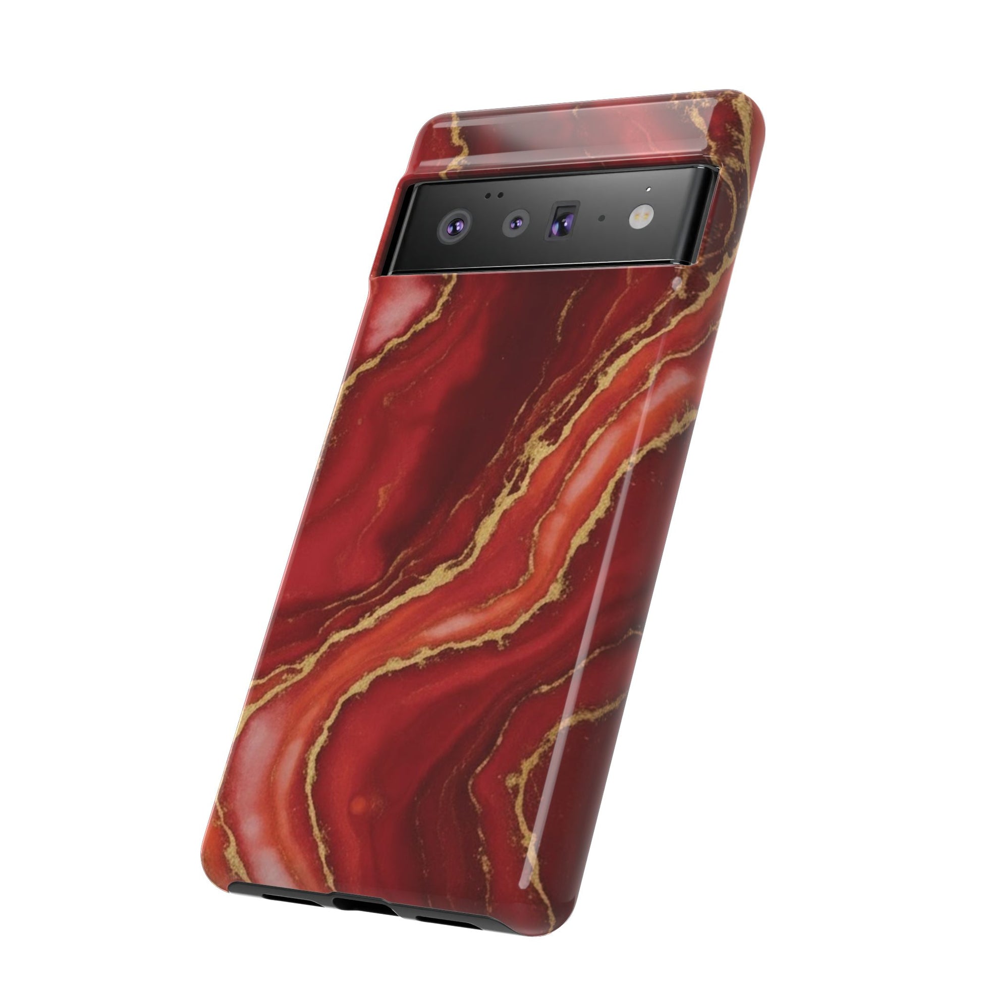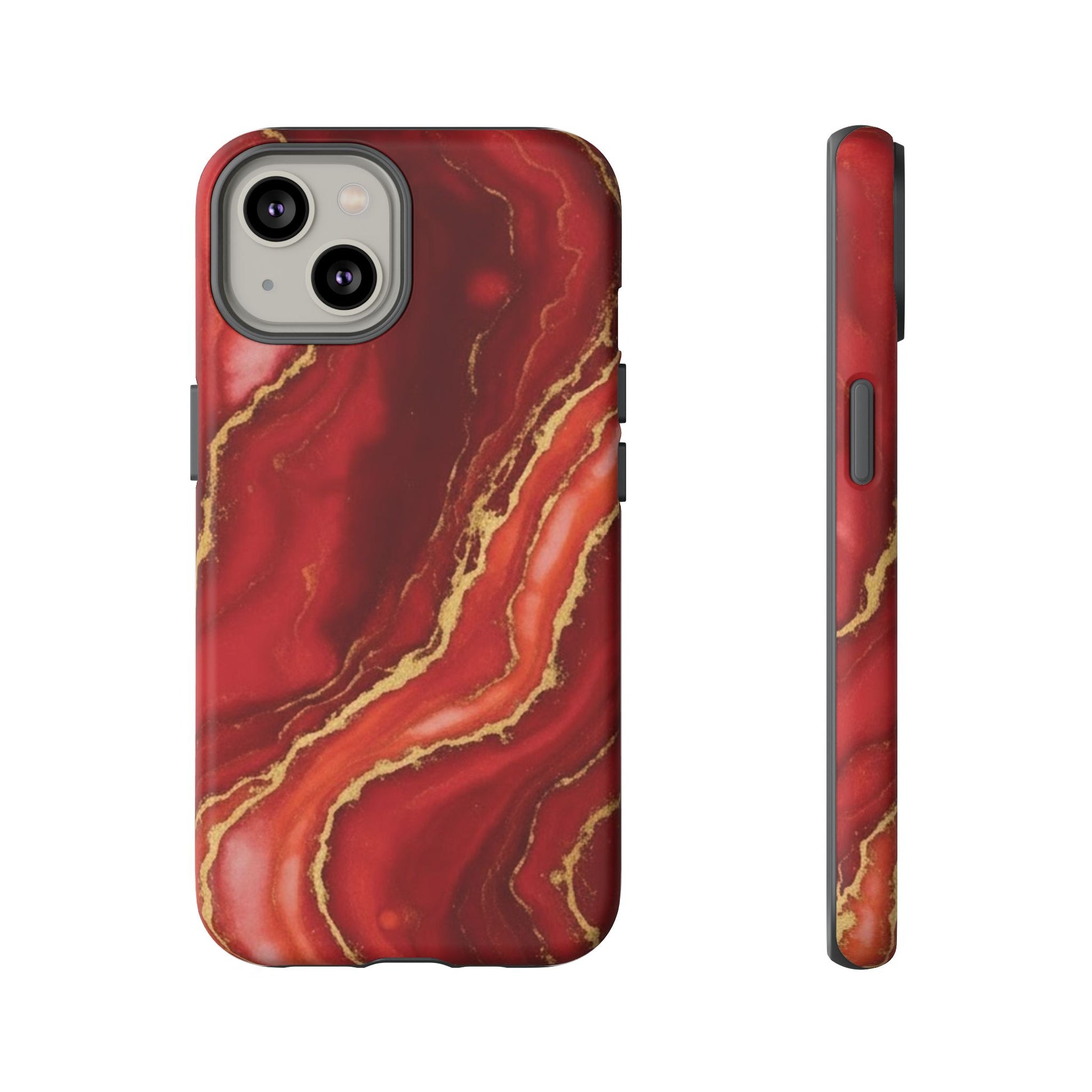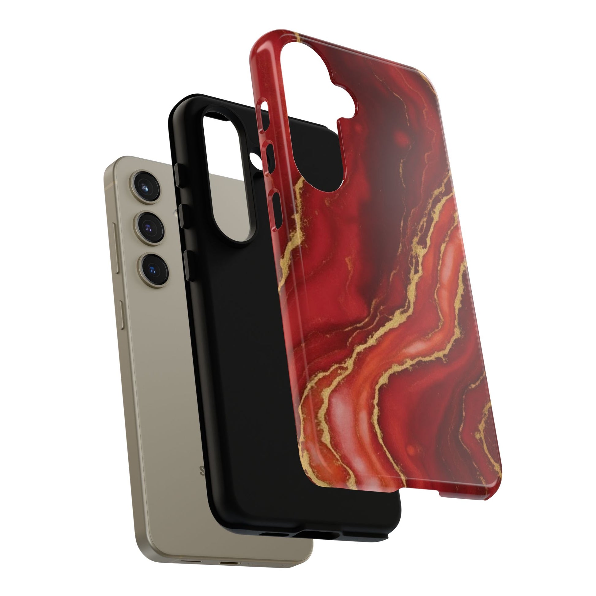 Red Agate Marble Phone Case with Gold Veins – Luxury Tough iPhone & Samsung Case
